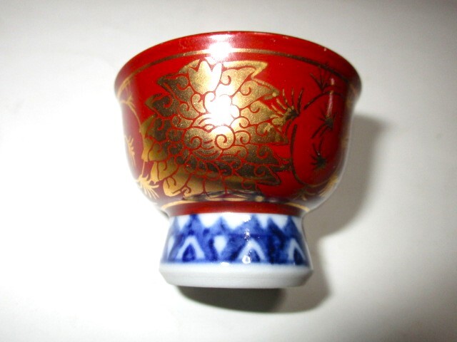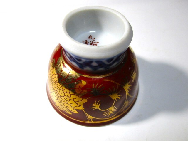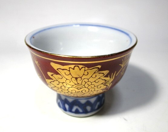 稀少 アンティーク★九谷焼 金襴手 高台盃 酒盃 九谷洋山 赤絵 金彩 華紋 小ぶり酒盃 杯 豆小鉢 酒器 お猪口 ぐいのみ 1客★