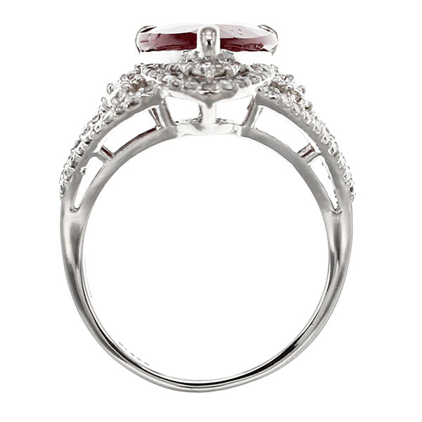 一際目を引く大粒のルビー。周囲には繊細に散りばめられたダイヤモンドがキラキラと輝き、ルビーの存在感をより一層際立たせるデザインリングです♪