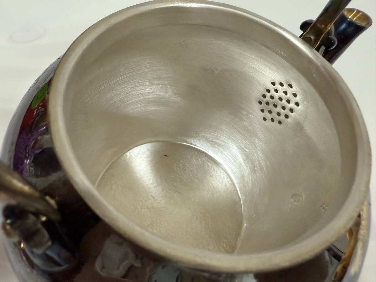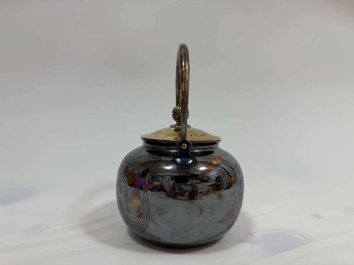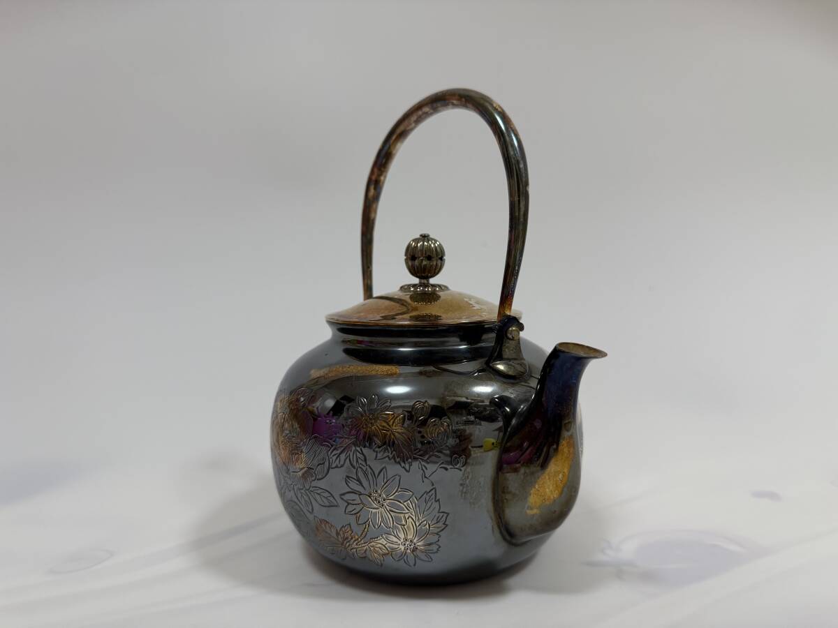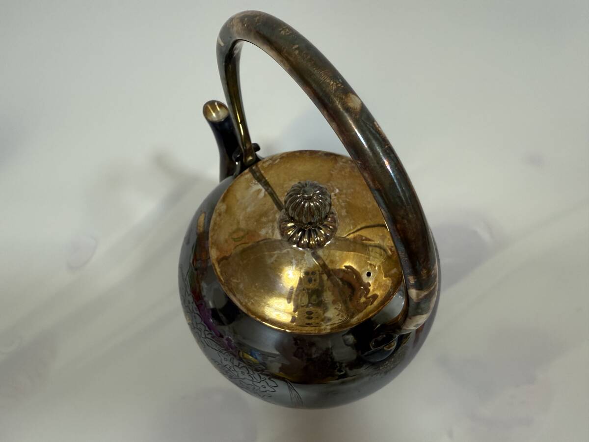 時代 純銀製 中川浄益造 草花紋様彫り 望月形 湯沸 工芸品 古美術品 銀瓶 煎茶道具