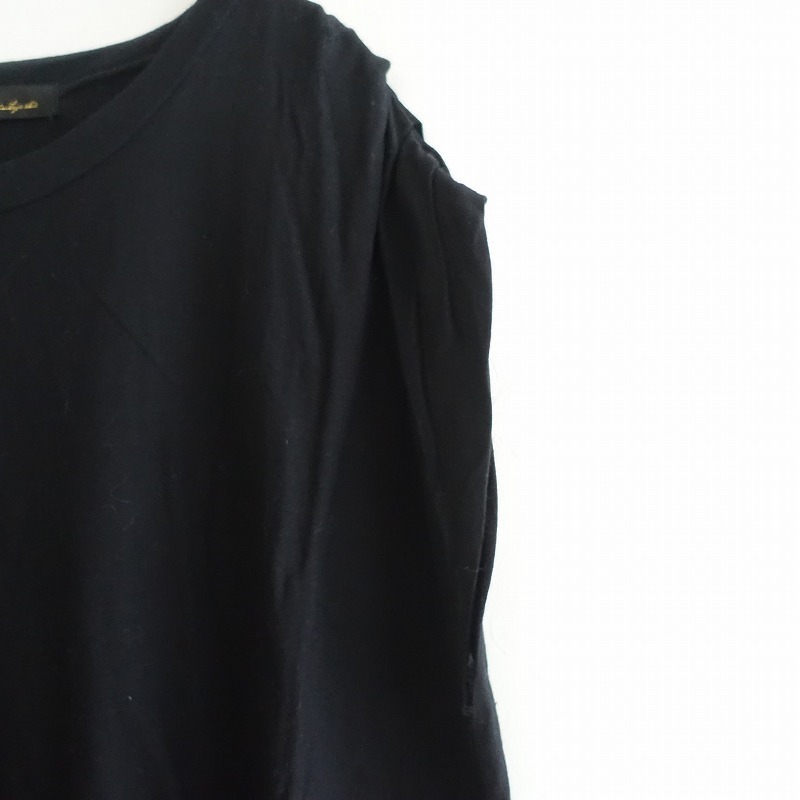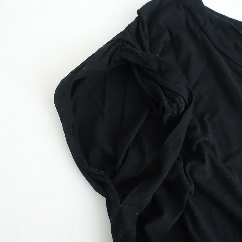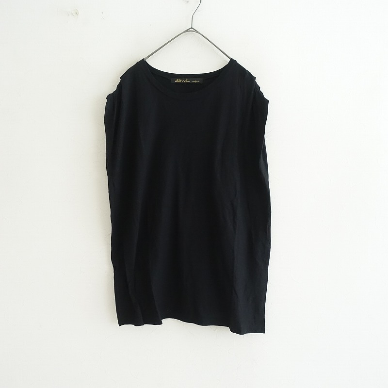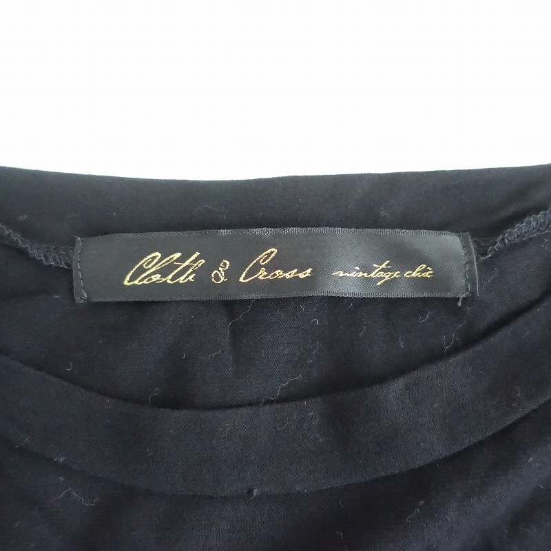 cloth&cross vintage chicのショルダータックノースリカットソーチュニックです。カラーはブラックです。コットンのやや薄手カットソー素材を使用。透け感はございません。肩に3タックを配したプルオーバーシャツです。裾サイドはスリット入りです。ポケットはございません。 |