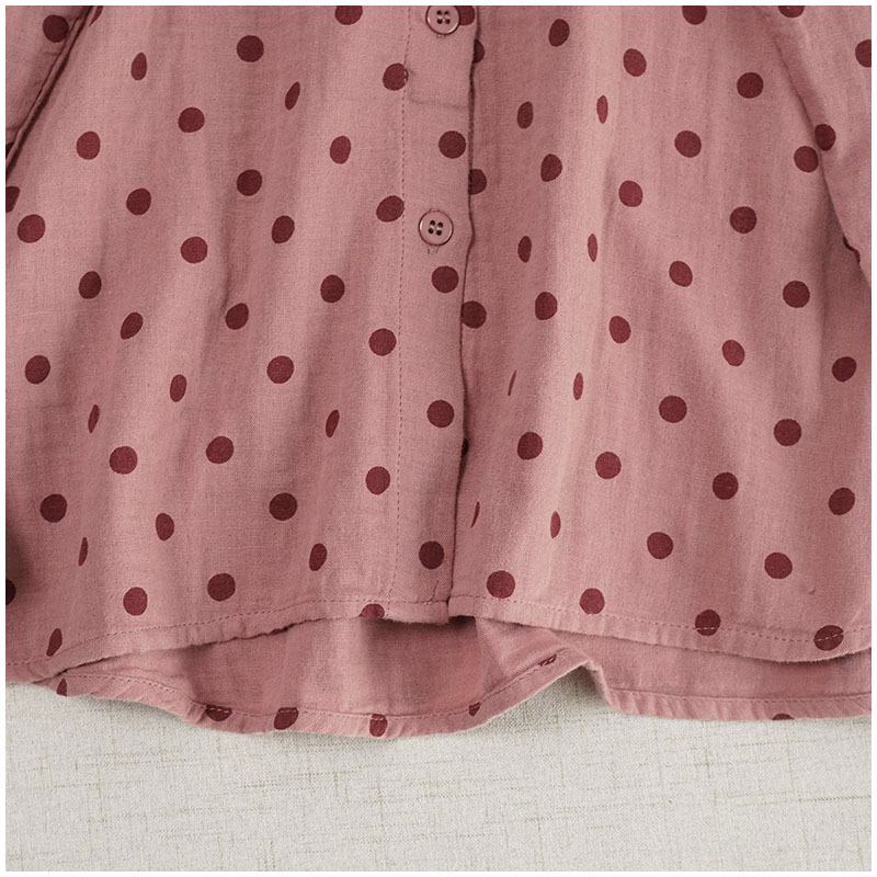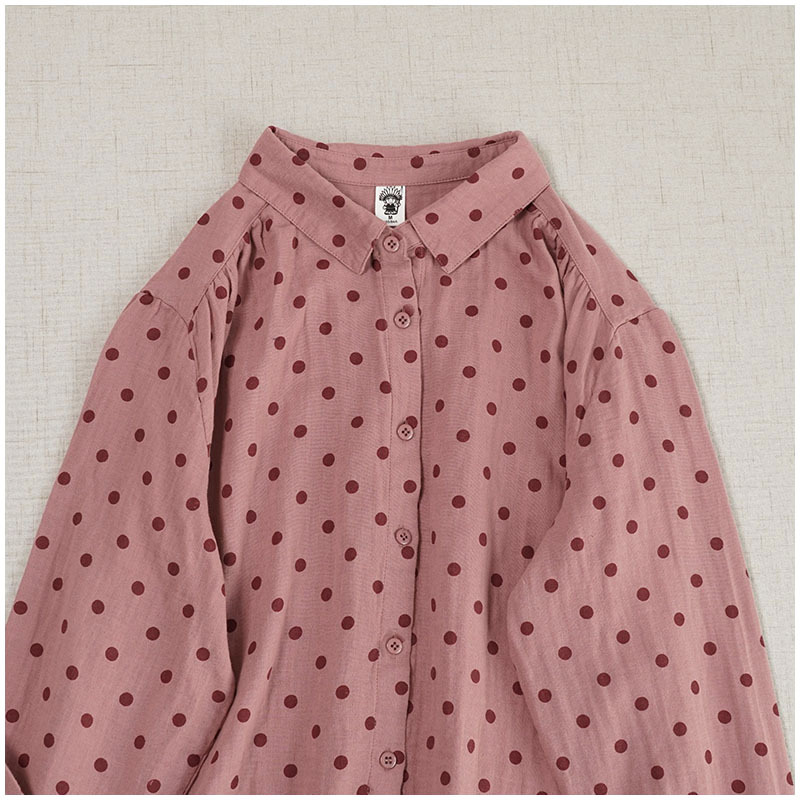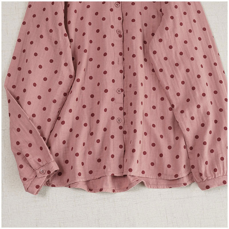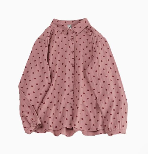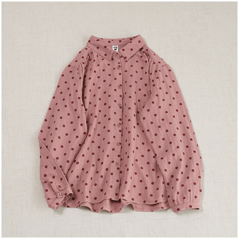 新品ダブルガーゼ ドット柄 ワイシャツ チュニック 大人可愛 ゆったり オシャレ フリーサイズ ナチュラル 綿100% コットン ピンク
