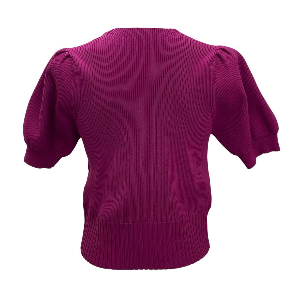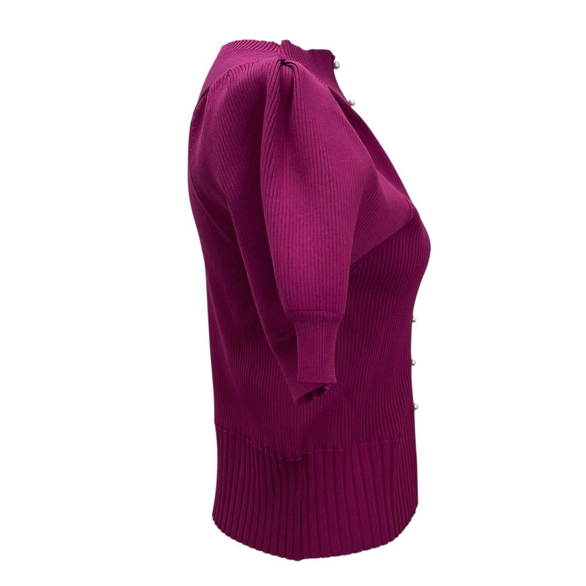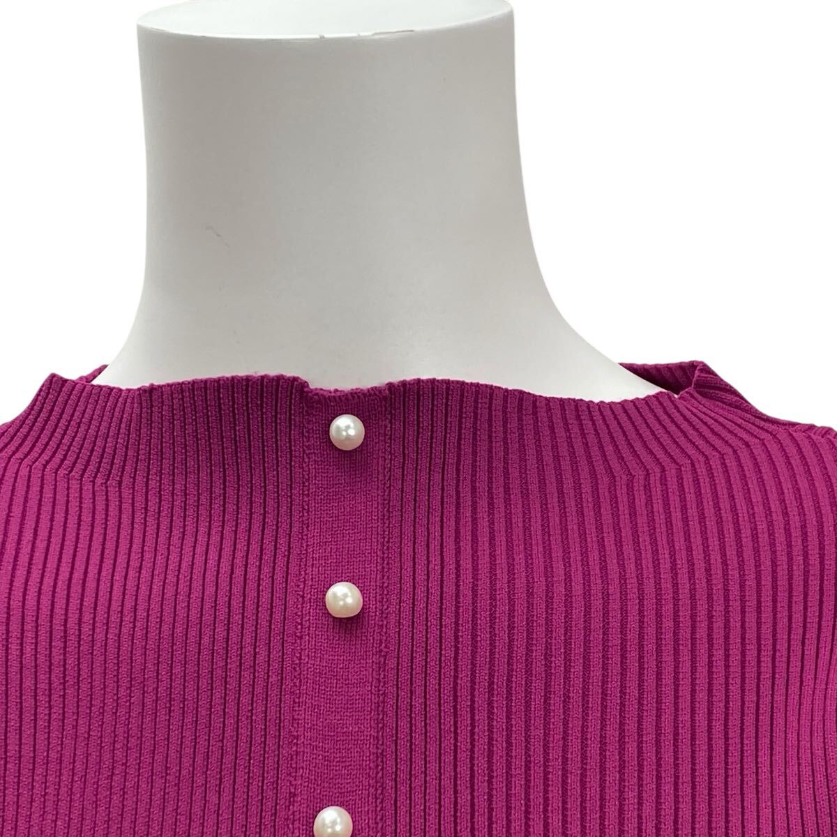 トップス  カットソー  シャツ  リブ  コスチュームパール  伸縮性あり  マゼンタ