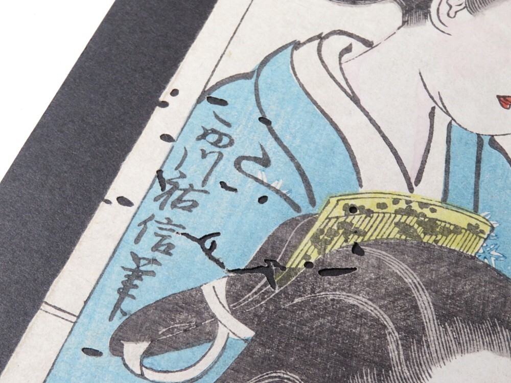 ●明治期 浮世絵 木版画 河鍋暁斎 人物図になります。古い物ですが極力状態の良い作品を出品しておりますので是非ご覧ください。