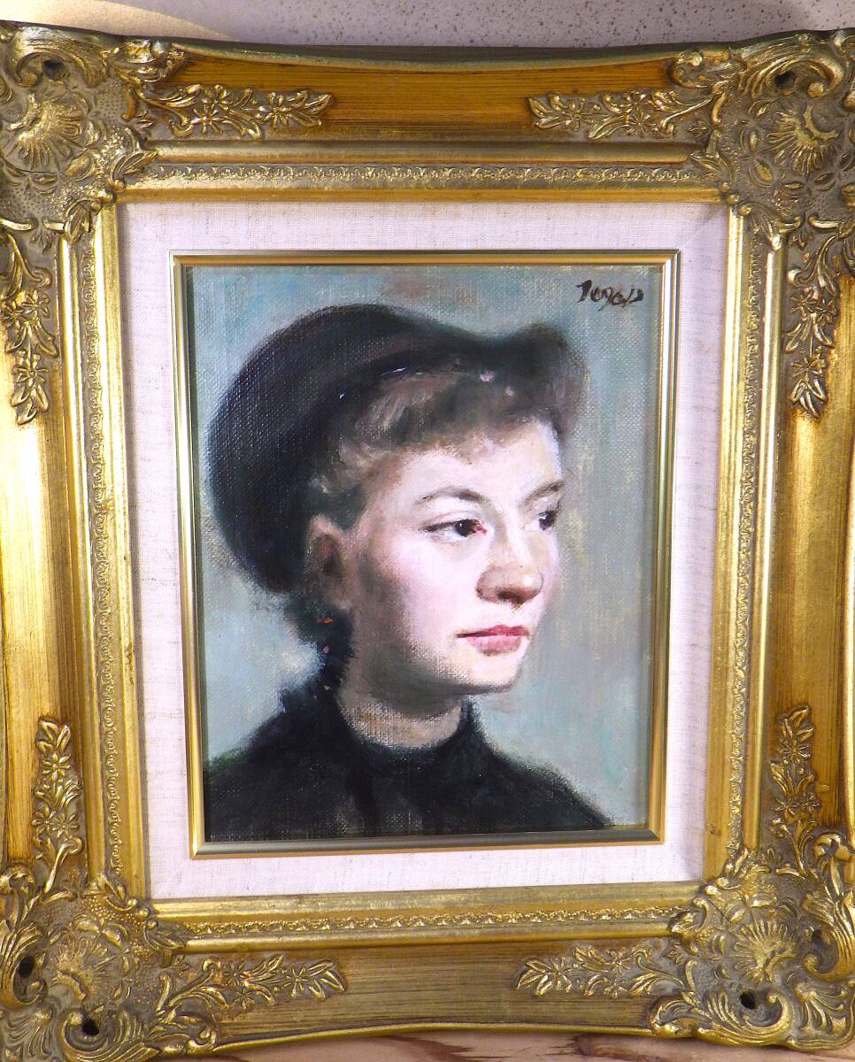 | 真作 油彩画 『ドガ(若い女)』 洋画家 端野末吉 真筆 肉筆 F3 ガラス額装品 栃木県出身 舞鶴美術協会会長 向井潤吉に師事