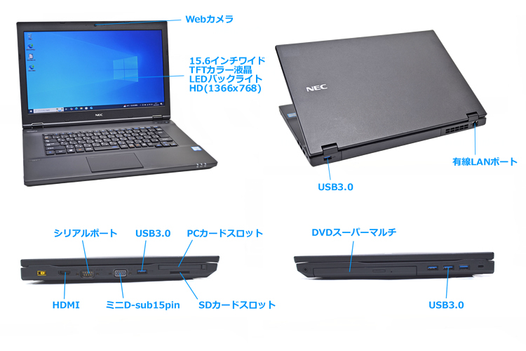 ■ ワイド画面で見やすい ■15.6型ワイドTFTカラー液晶 (HD:1366×768ドット LEDバックライト、ノングレア) 搭載。