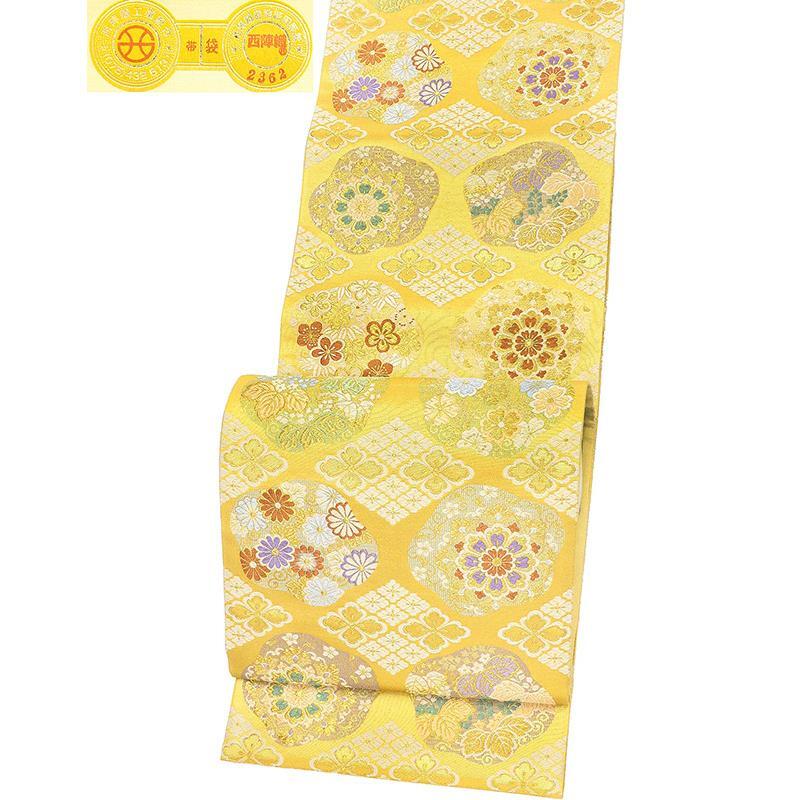 | ※記念感謝祭【仕立無料】西陣伝統工芸正絹慶事錦礼装袋帯☆錦唐織菱梅図四季花文様老舗大光織物 |