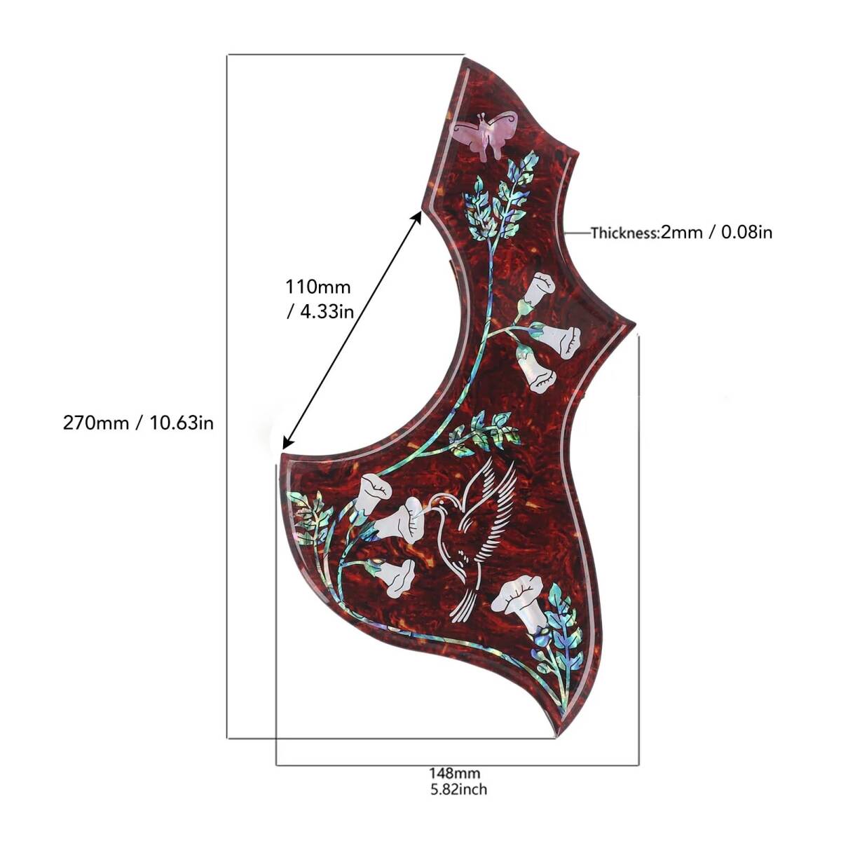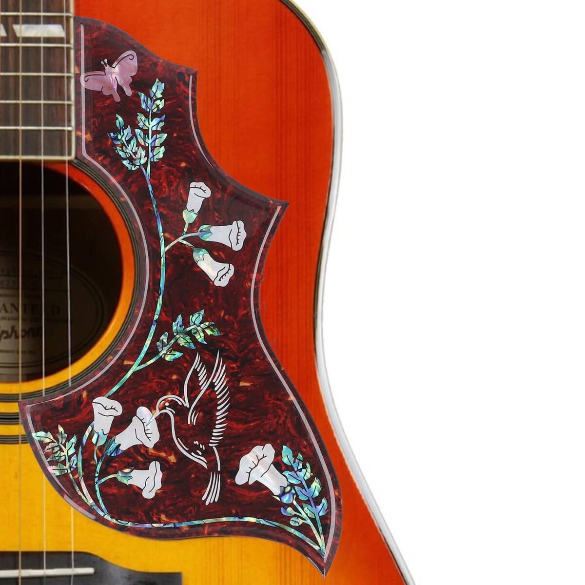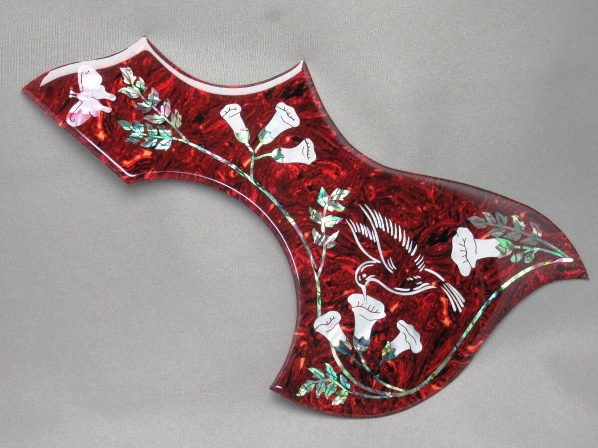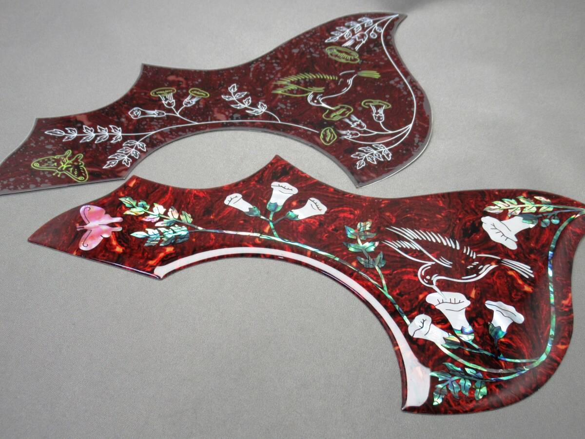 この品は基本的にEpiphoneのハミングバードタイプのピックガードと柄もサイズが全く同じですので(3枚目の比較画像参照)グレードアップやイメチェンに最適です。