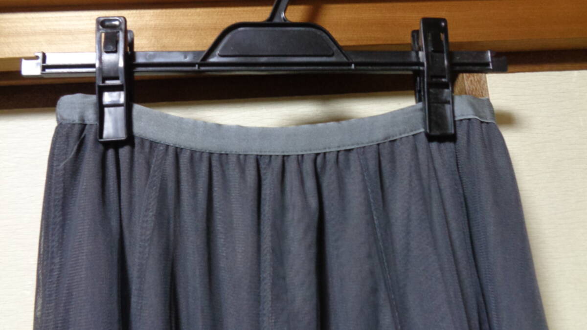 送料込み・クリーニング済み 美品 S.HOUE W総ゴム チュールスカート F グレー