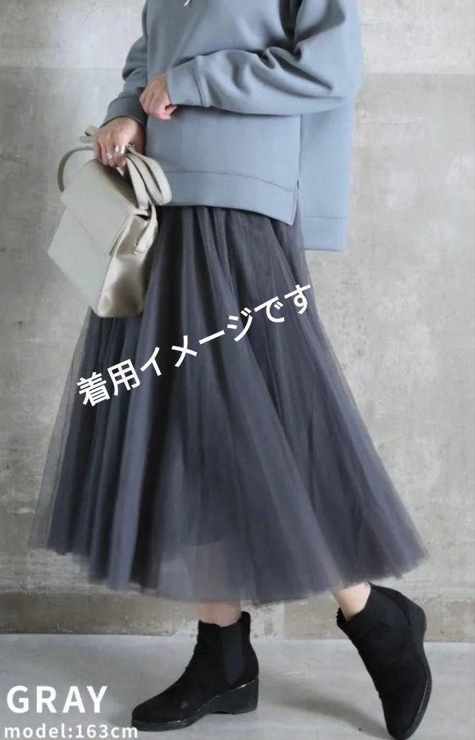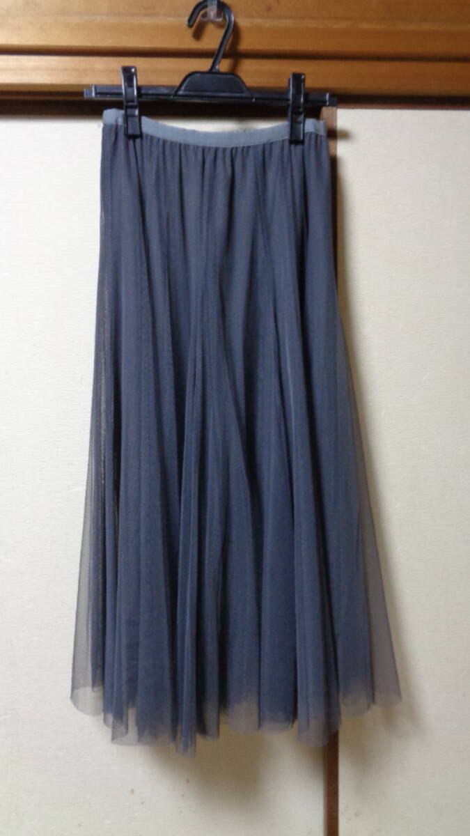 送料込み・クリーニング済み 美品 S.HOUE  W総ゴム チュールスカート F グレー