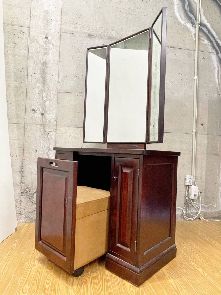 三面鏡ドレッサー 化粧台 民芸調ドレッサー 椅子付き 収納多数 ミラーチェスト ドレッサー 家具 鏡台