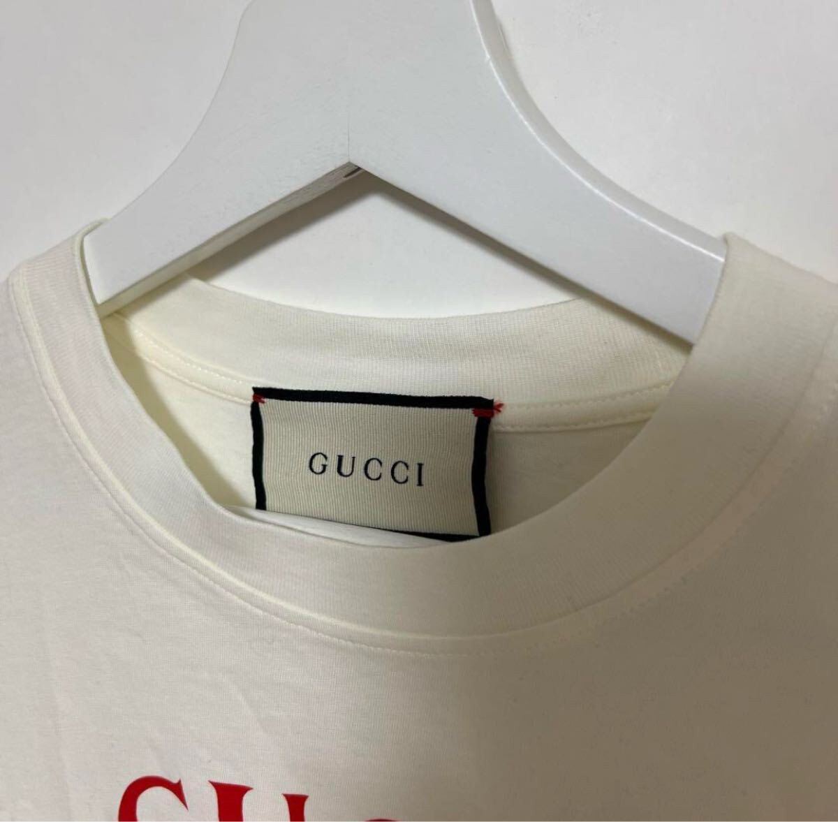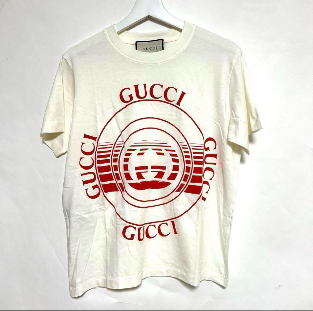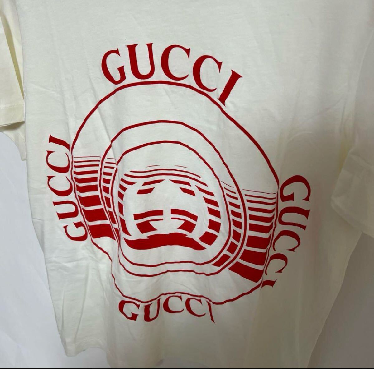 GUCCI グッチ レッドディスクプリント コットン ジャージー Tシャツ M アイボリー 中古