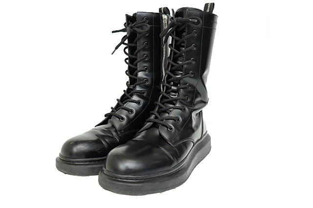 アレキサンダーマックイーン ALEXANDER MCQUEEN Alex Tall Hybrid Bt Sn12 アレックス トール ハイブリット レースアップ レザー ブーツ 43 黒●▲■250531