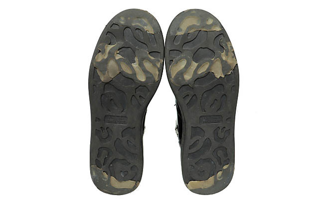 【状態】写真のように、使用に伴う傷・擦れ・汚れがあり、薄っすらシミがございます。また、シューレース付近・履き口には剥げがあり、甲・サイド・踵には履き皺がございます。アウトソールの一部には補強跡があり、使用感がございますが、まだまだお使い頂けるお品物かと思われます。 ※神経質な方はご入札をお控え下さい。あくまで中古品になりますので新品の状態とは異なる商品もございます。また店頭にて併売しておりますので、出品時と状態が異なる場合がございます。ご了承いただいた上でのご購入をご検討下さい。