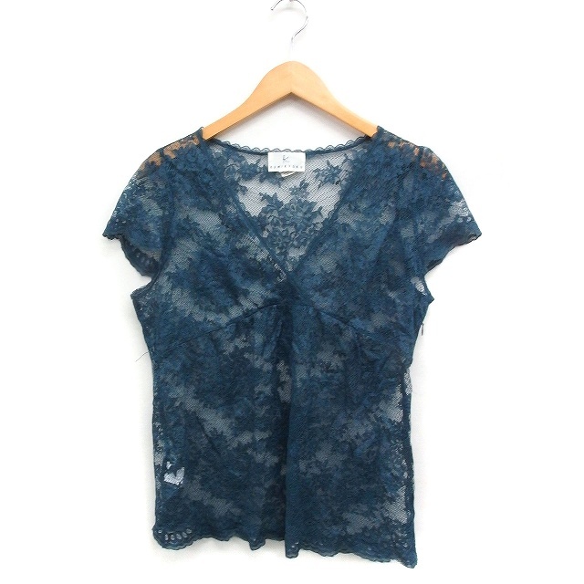 クミキョク 組曲 KUMIKYOKU レース ブラウス 半袖 クロスVネック 6 グリーン 緑 /FT41 レディース