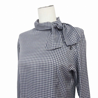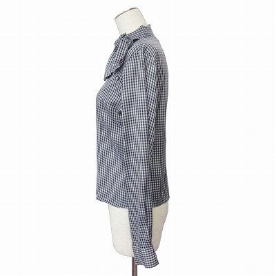 エックスガール x-girl ブラウス シャツ ボウタイ チェック 紺 レディース