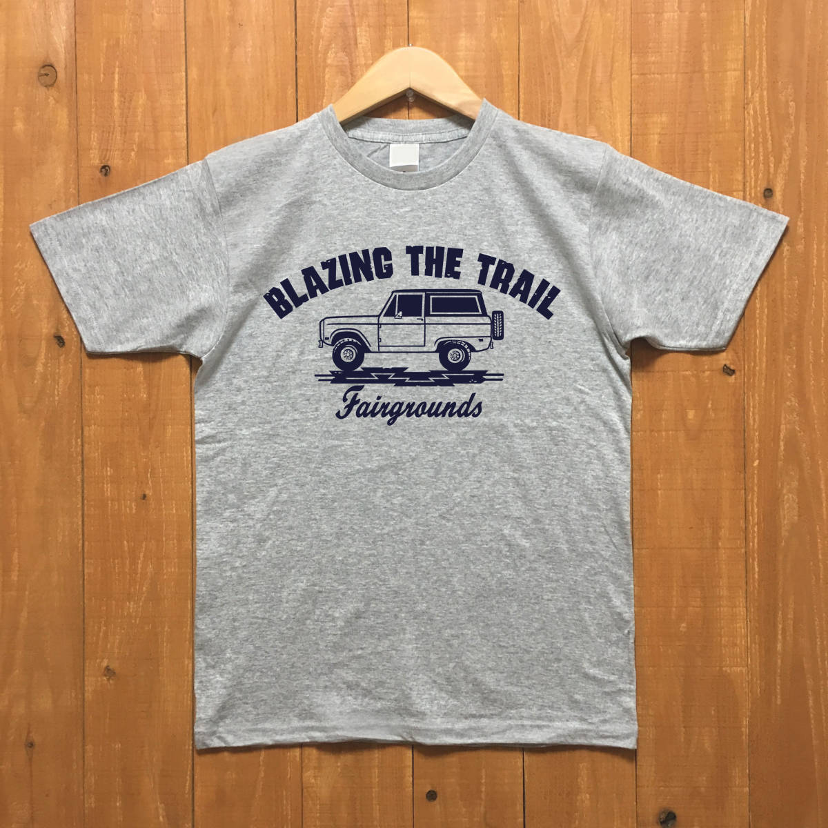 ■BLAZING THE TRAIL Tシャツ■XLサイズ(グレーxネイビー)アメリカ アメ車 フォード ブロンコ ア-リ-ブロンコ FORD BRONCO