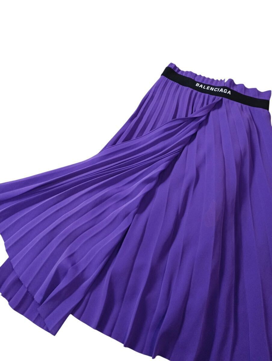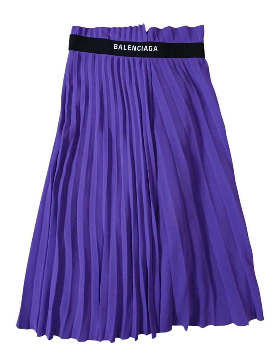 (D) BALENCIAGA バレンシアガ ポリエステル プリーツ スカート 36 パープル (ma)