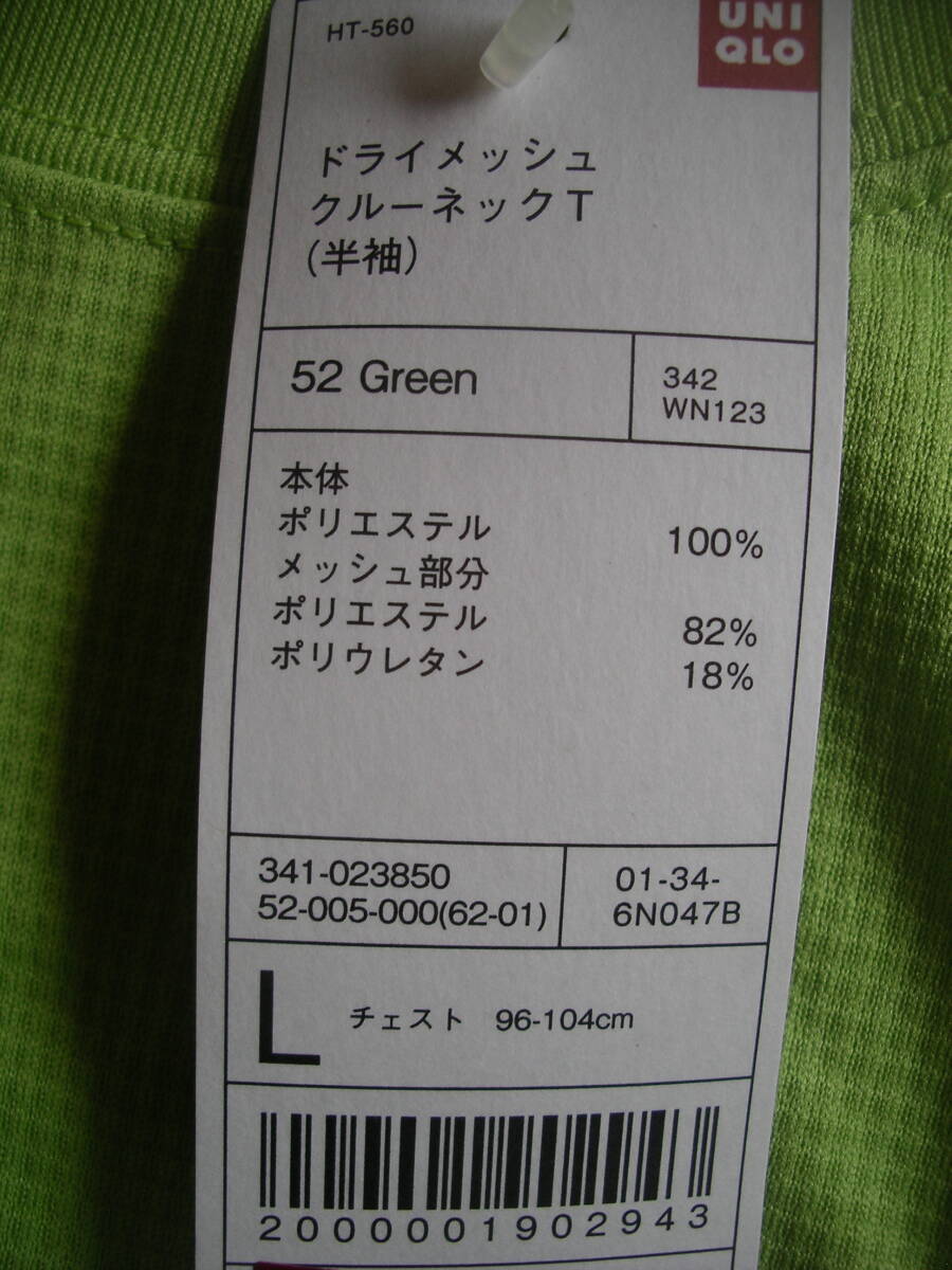 未使用品★タグ付き★ユニクロ★ドライメッシュクルーネックT(半袖)★Lサイズ★GREEN!