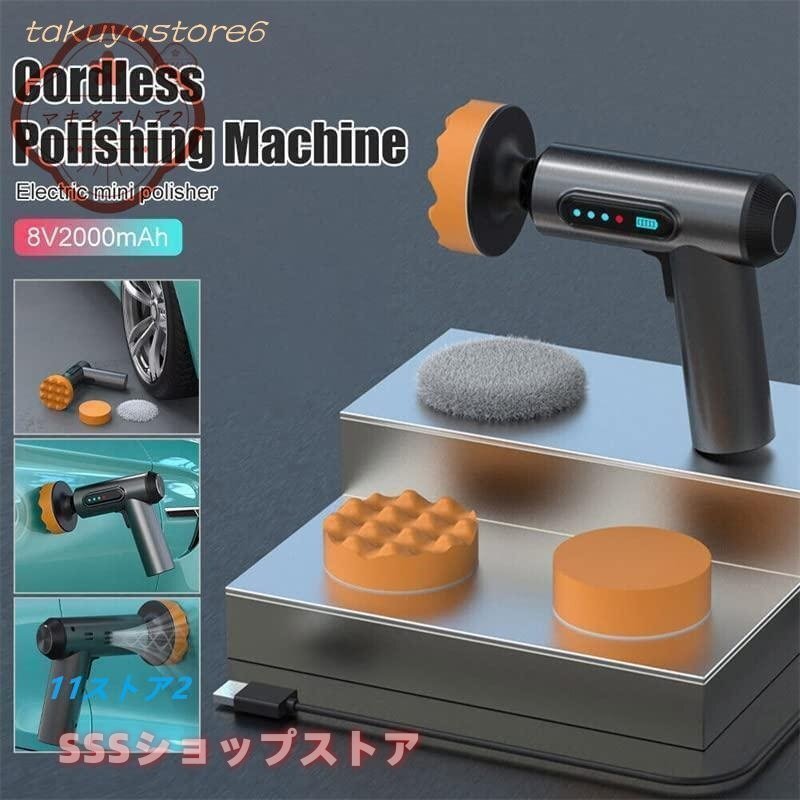 電動 ポリッシャー コードレス カーポリッシャー 充電式 2000RPM クリーニング研磨ワックス機 車磨き ホイール磨き 艶出し 傷消し