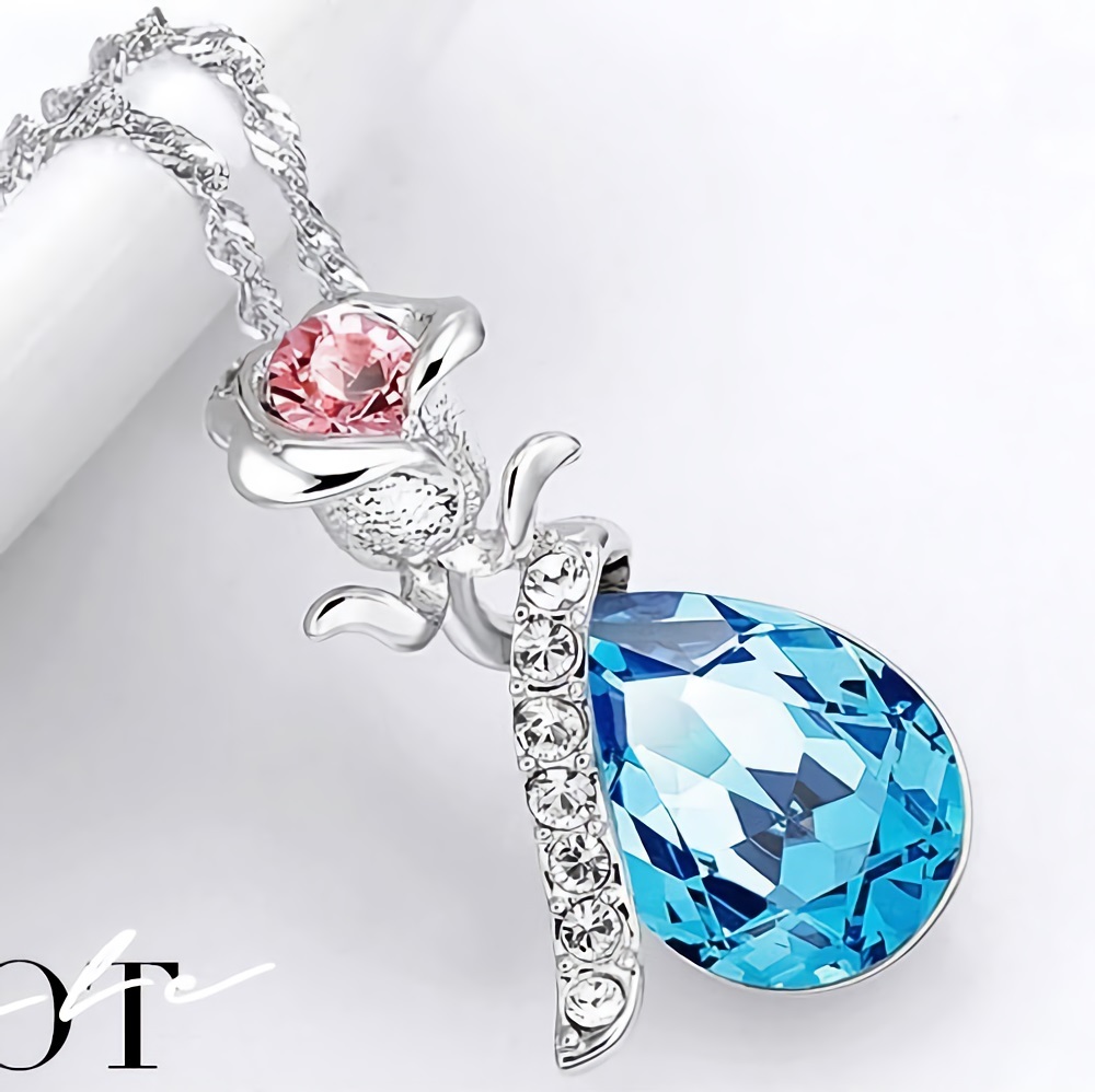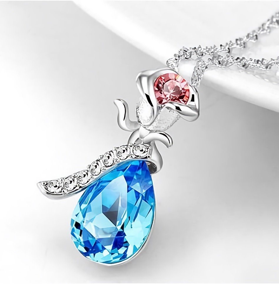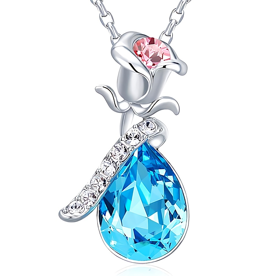 新品★送料無料★青い薔薇ブルートパーズ雫ダイヤ プラチナ仕上925シルバーネックレス 誕生日プレゼント旅行連休花見春ギフト国内発送