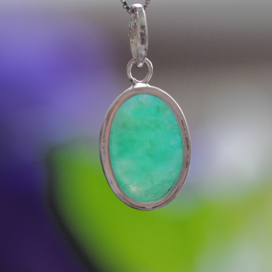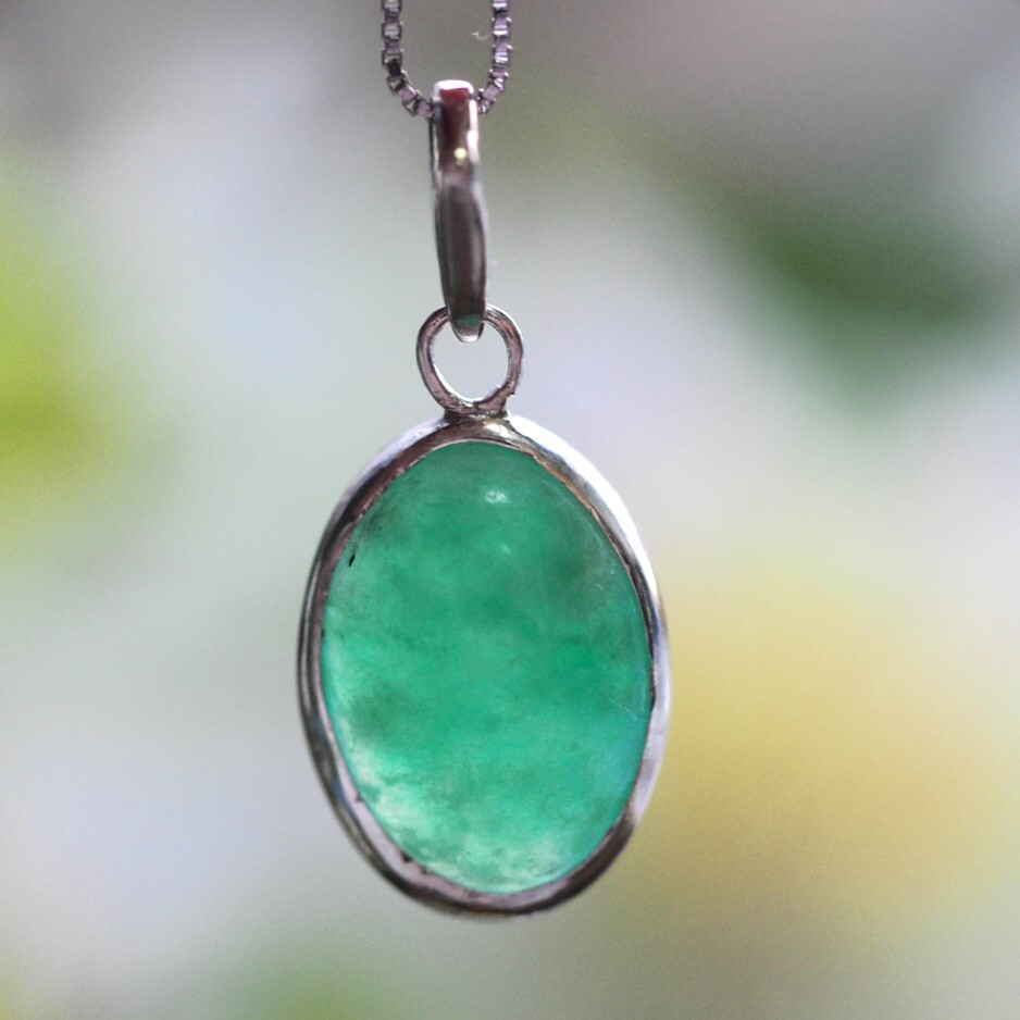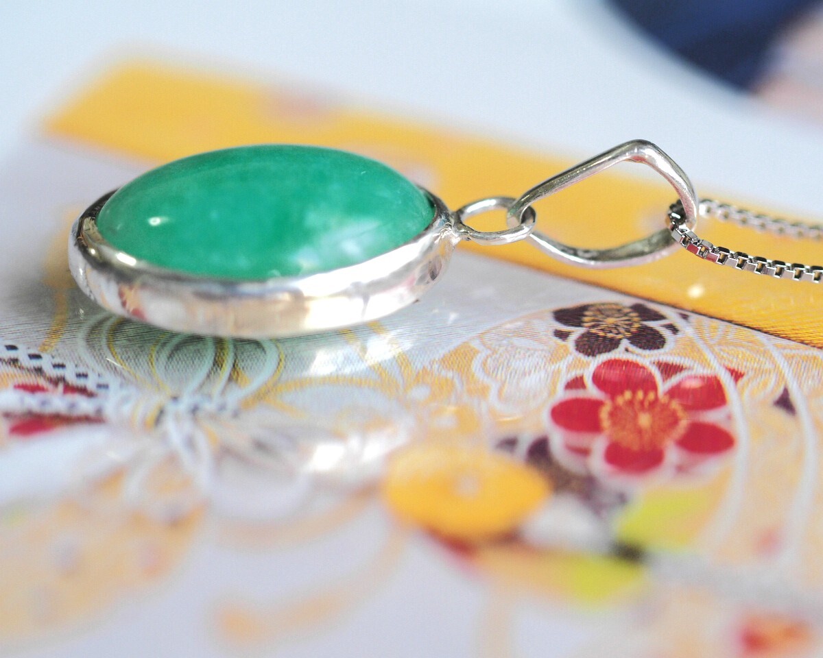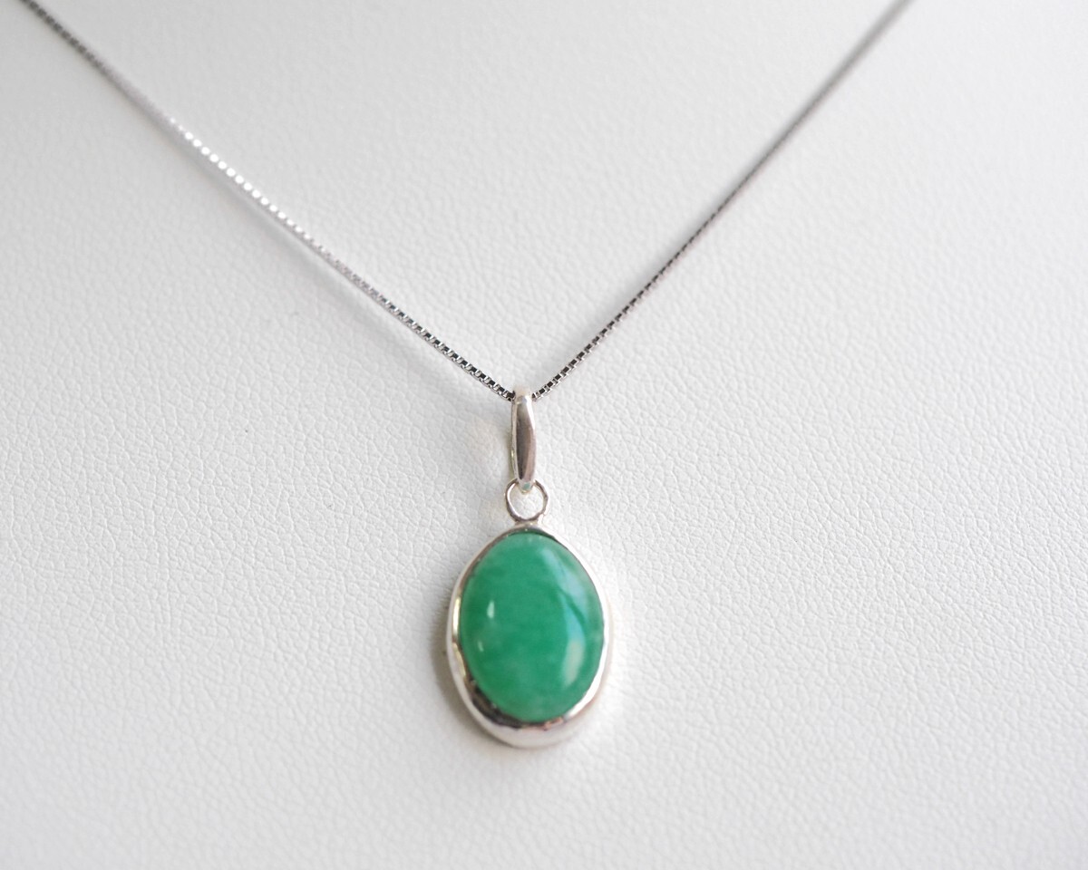 こちらは柔らかいグリーンカラーのインド翡翠のネックレスです。
