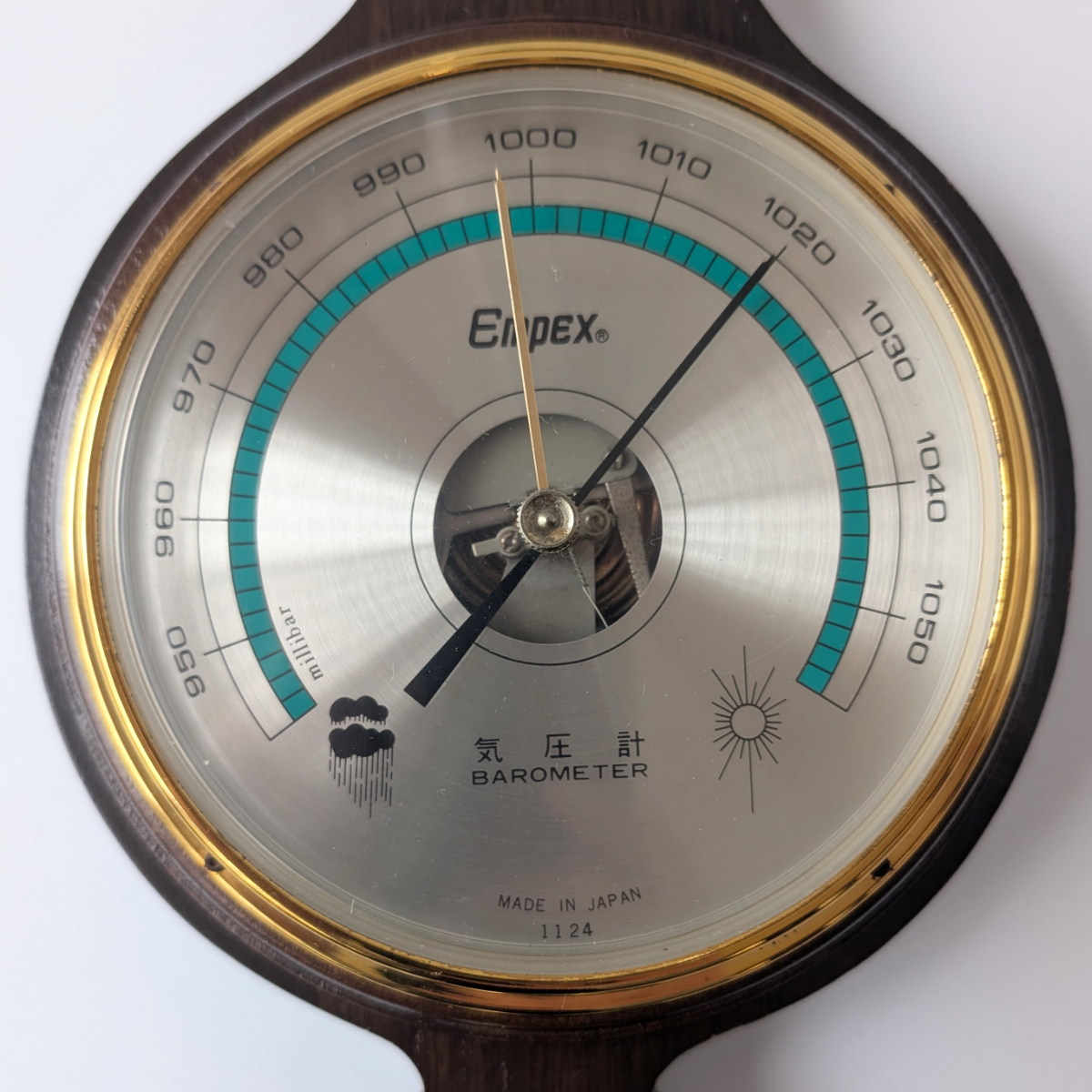 気圧計 EMPEX 気象計 環境測定器 温度計 湿度計 木製 壁掛け 環境測定器 インテリア コレクション アンティーク 昭和レトロ 現状品 の出品です。