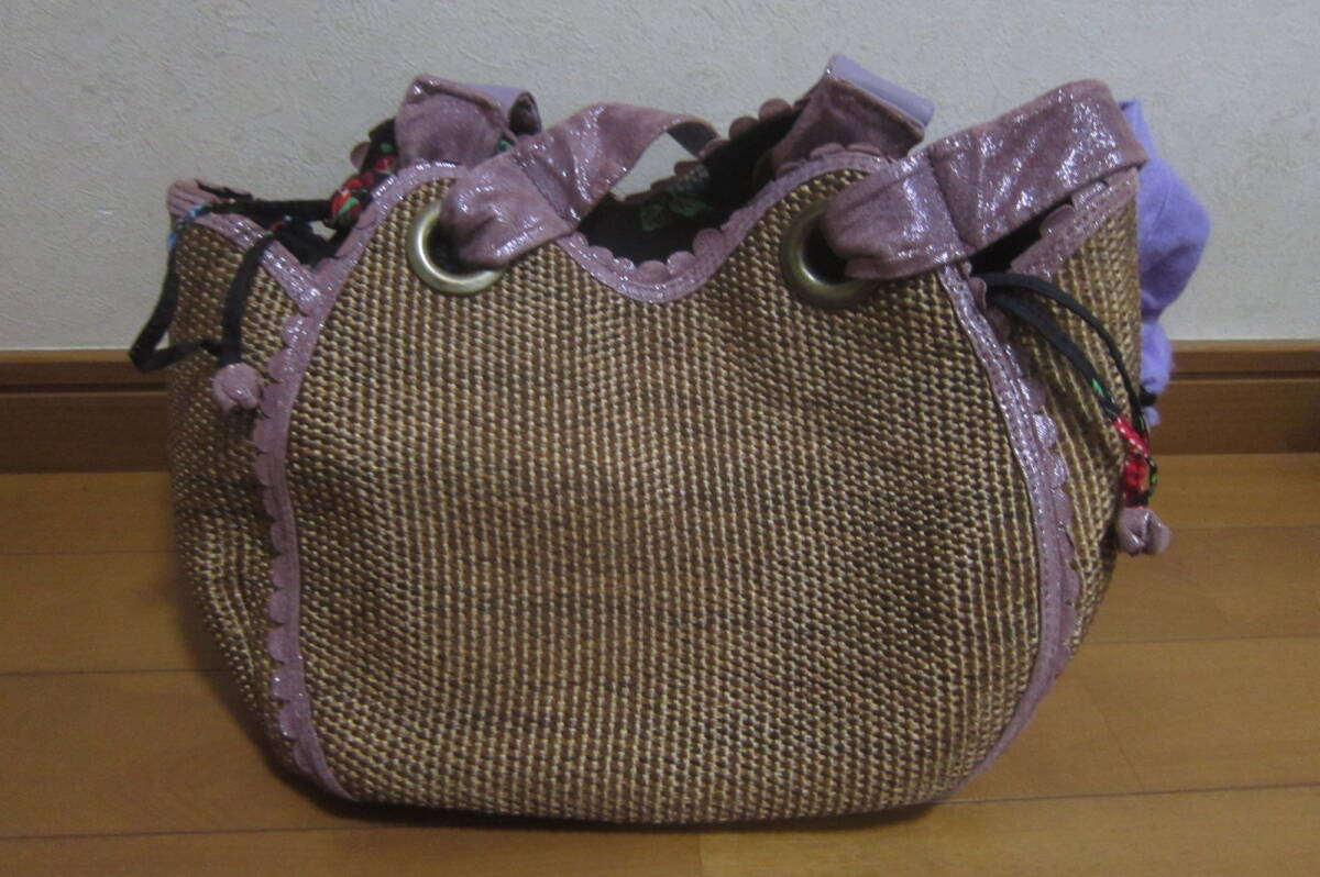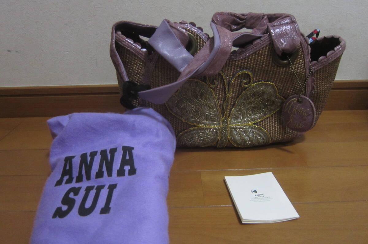 ★ ★ANNA SUI×kuipo アナスイ×クイーポ 鞄 トートバッグ ハンドバッグ 取扱説明書付き 茶×紫★ ★