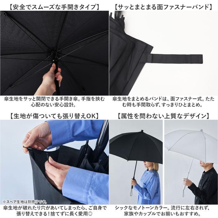 | 商品説明 | ・・【スタイリッシュでおしゃれな長傘】 ・シンプルなデザインで、使いやすさにもこだわった「プラスチック ファブリックキャノピー」。 ・【オールプラスチックの新しい傘】 ・壊れにくくサビにくい!丈夫な傘骨を採用し、使い心地も軽やか。 ・【環境にも配慮したエコアイテム】 ・パーツにリサイクル素材を使用。環境に優しくサスティナブル。 ・【ひと味違うスマートなフォルム】 ・中棒と手元が滑らかに繋がったデザインがポイント。落ち着きがあり、洗練された印象に。 ・【安全でスムーズな手開きタイプ】 ・傘生地をサッと開閉できる手開き傘。手指を挟む心配のない安心設計。 ・【サッとまとまる面ファスナーバンド】 ・傘生地をまとめるバンドは、面ファスナー式。たたむ時も手間取らず、すっきりひとまとめ。 ・【生地が傷ついても張り替えOK】 ・傘生地が破れたり穴があいてしまったら、ご自身で張り替えできる!捨てずに長く愛用◎ ・(※)スペア生地は別売りです。 ・【属性を問わない上質なデザイン】 ・シックなモノトーンカラー。流行に左右されず、家族やカップルでお揃いもおすすめ。 |