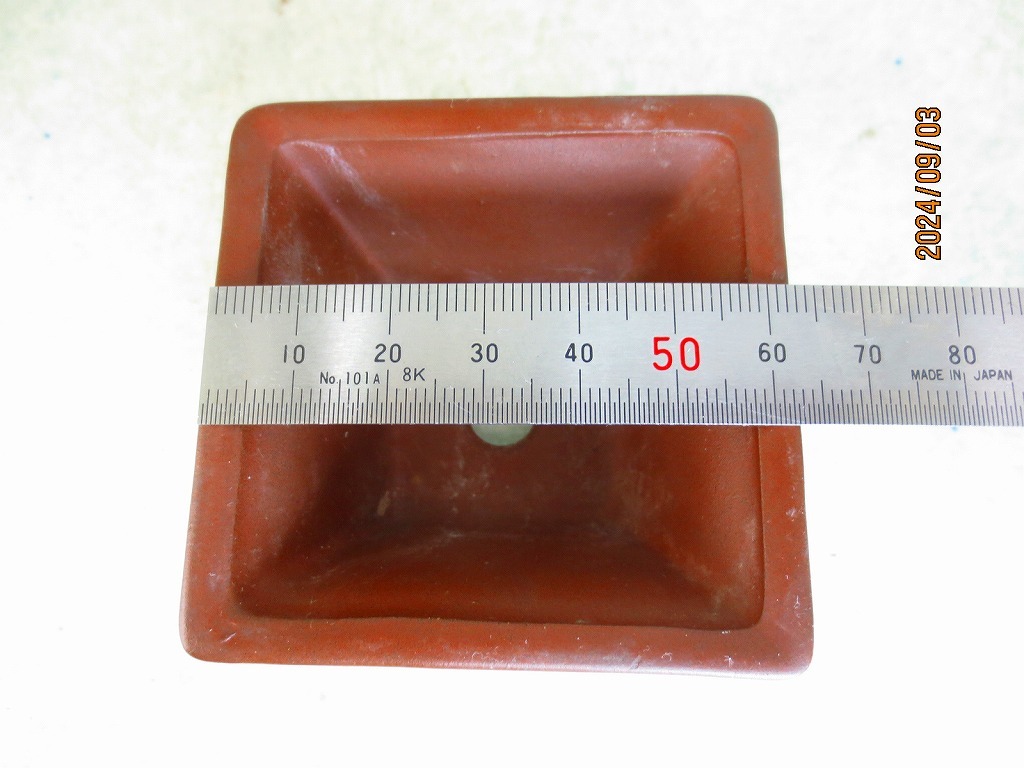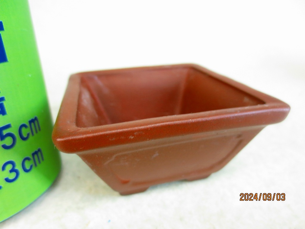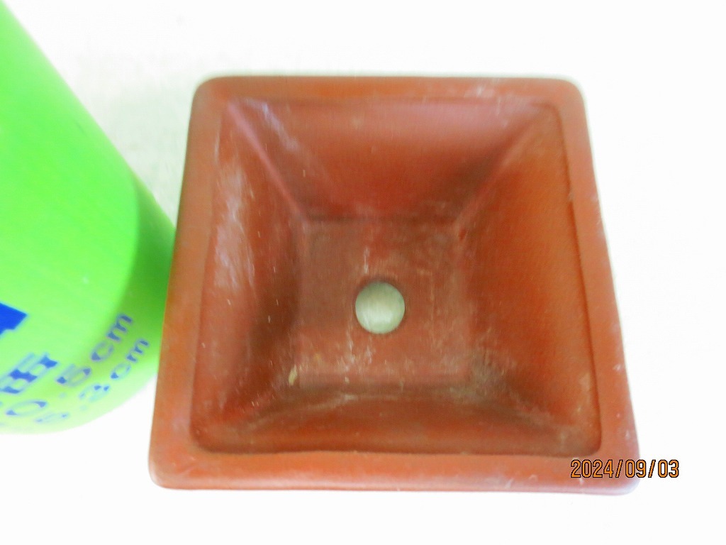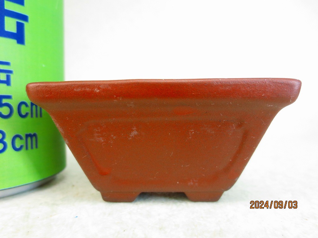 [緑の市場] 小品盆栽鉢 銘有り 朱泥正方鉢 6.3㎝ (T381)定形外郵便送料無料/ゆうパック発送有料*選択可※無料発送はポスト投函 定形外郵便発送選択は送料無料でポスト投函ですから配送日時指定はできません。補償なしです。(寸法や梱包資材、業務の都合で定形外郵便以外の発送方法を使用する場合がございます)ゆうパック選択は送料有料で配送指定でき補償あります。複数点追加できます。*盆栽と同梱包ご希望の際は送料不要ですが別途取引メッセージでお知らせください。 ヤフオクの取引においてメッセージは特に必要ありません。挨拶などを省略できる取引システムですし取引ナビの通知で進行状況が判るので都度の連絡(送金や受け取りのメッセージ)は不要です。特別な連絡事項があればお知らせください。双方合理的に進めましょう。また、お急ぎの方は入札をご遠慮ください。業務時間内での対応になります(土日祝休業)。 寸法は一緒に撮影しているスケールまたは比較物をご参照ください。 飲料缶は高さ約10㎝、直径約5㎝です。 500mlペットボトルは高さ約21㎝です。 *まとめて取引を手続きされた際は落札後に取引メッセージで発送方法をお知らせください。 僅かなカスレ傷がある前提でお求めください。 画像(撮影時)では小細部まで表現できないので完璧品をお求めの方は入札ご遠慮ください。 |