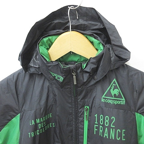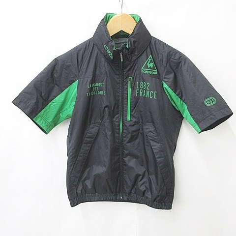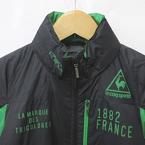 ルコックスポルティフ ゴルフ スポーツウエア ジャケット ブルゾン 中綿 半袖 ジップアップ スタンドカラー フード 黒 緑 M メンズ