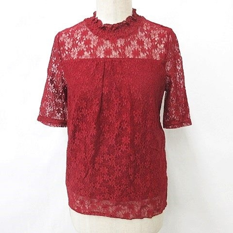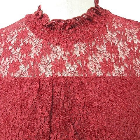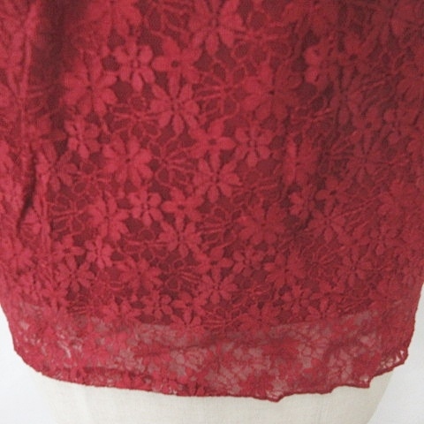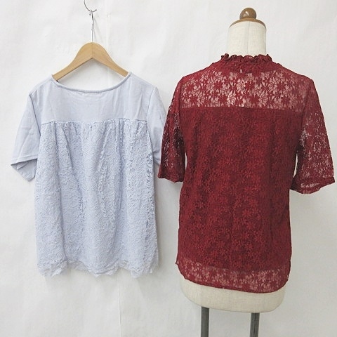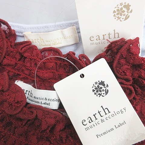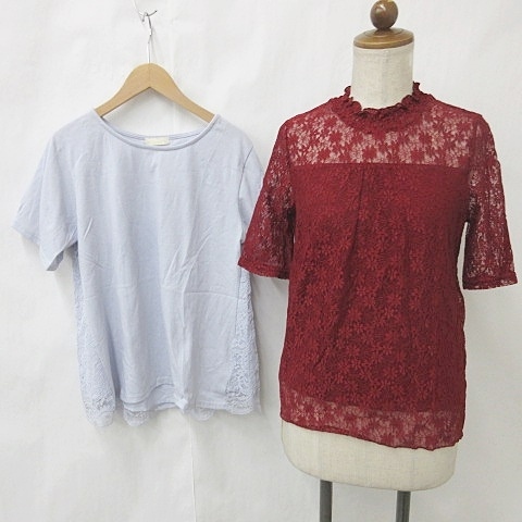 未使用品 アースミュージック アンド エコロジー EARTH MUSIC ECOLOGY ブラウス カットソー 2枚セット 半袖 総レース レッド グレー M F