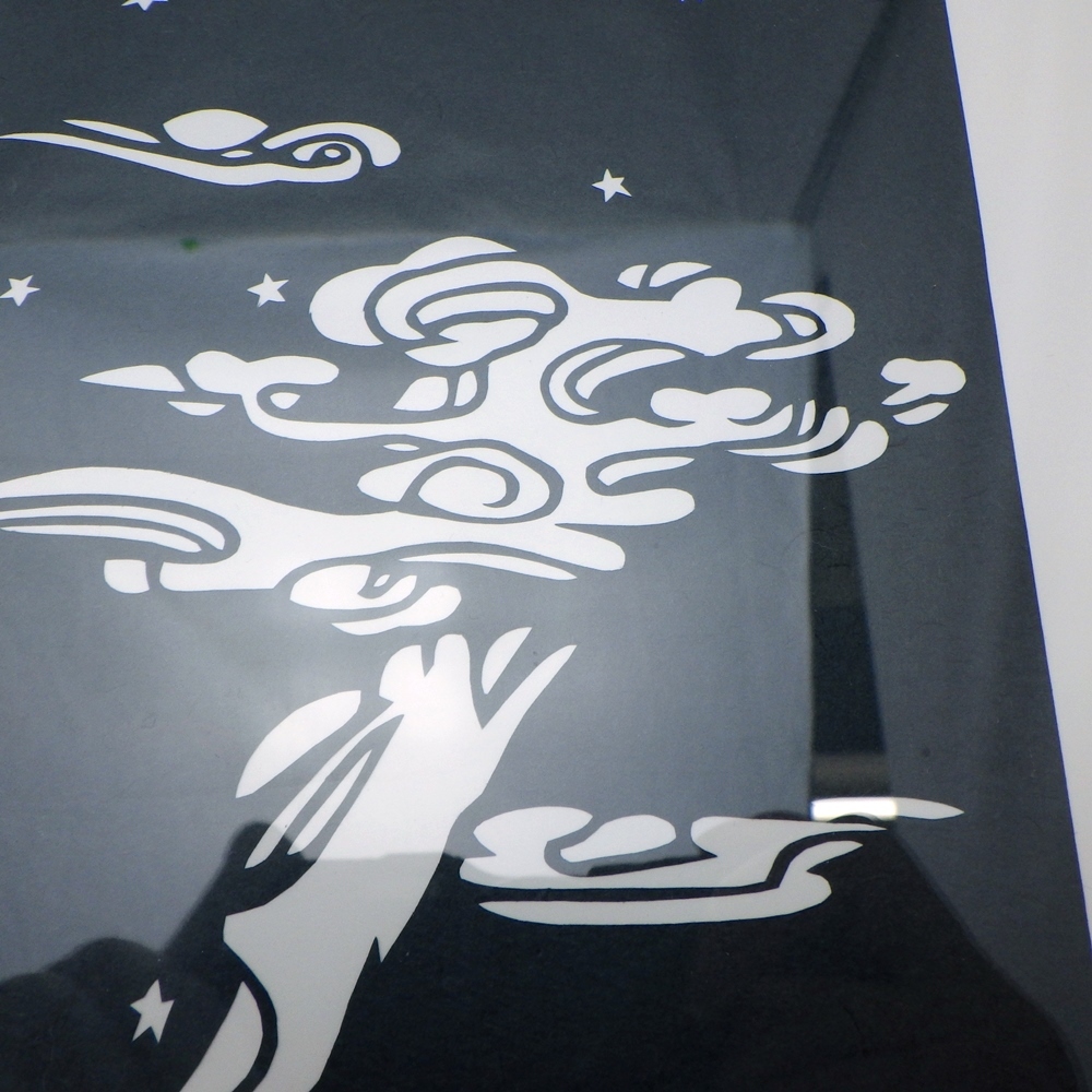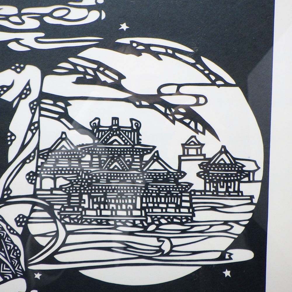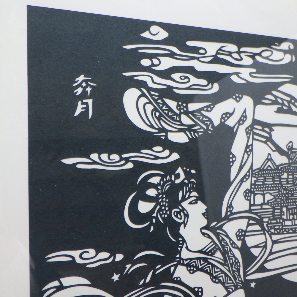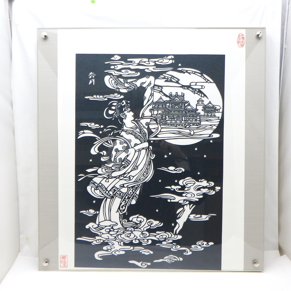 25-H-60 中国民間剪紙(切り絵) 田曠(上海在住作家) 嫦娥奔月 奔月 アクリル 額装 約44.5cm×41.5cm インテリア 壁掛け