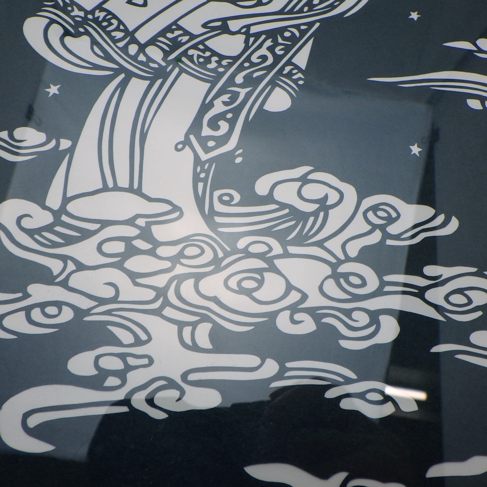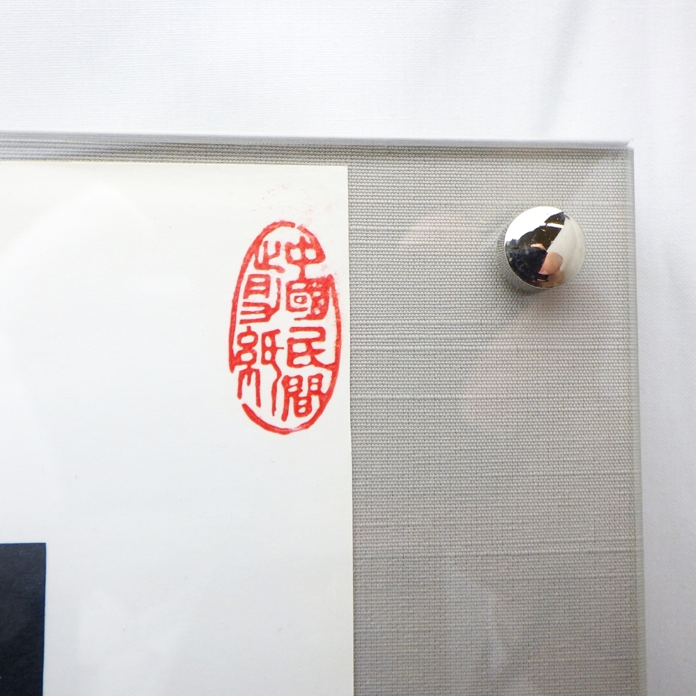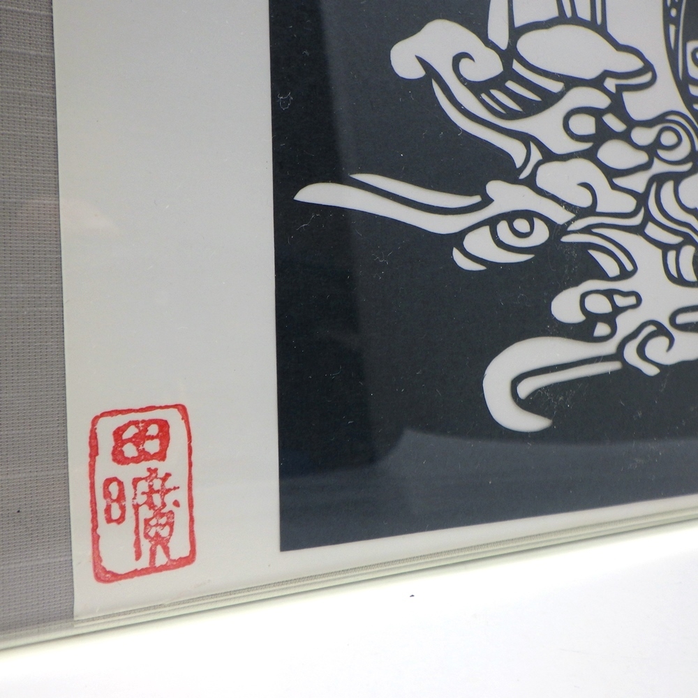 状態: 特に目立つダメージはありません。検索したところ、2008年にあった中國剪紙展で購入されたもののようです。額縁は裏書きが違うので別の作品のものを使用したようです。