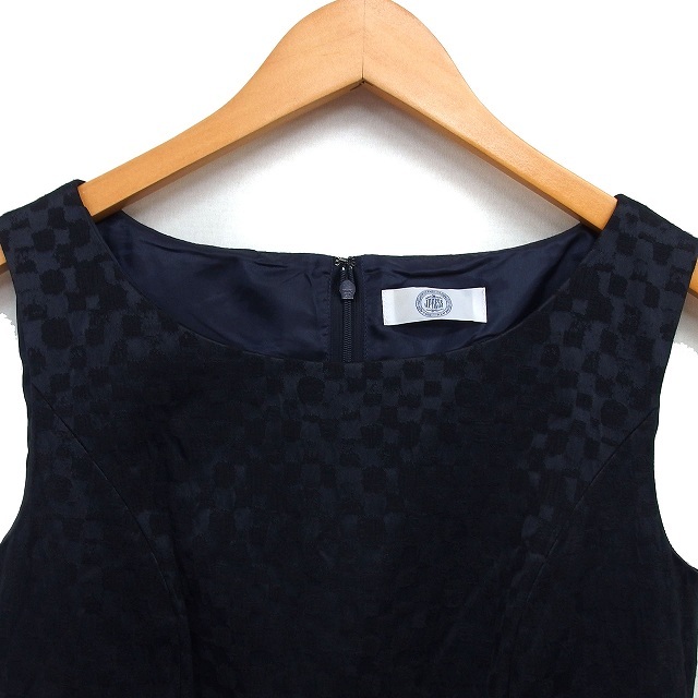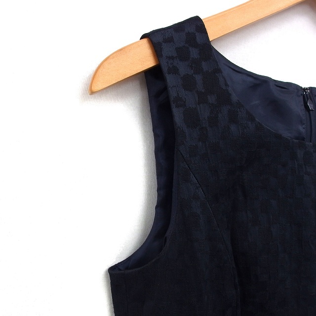 ジェイプレス J.PRESS タイト ワンピース ひざ丈 ジャガード スリット タック ノースリーブ 9 紺 ネイビー /NT4 レディース