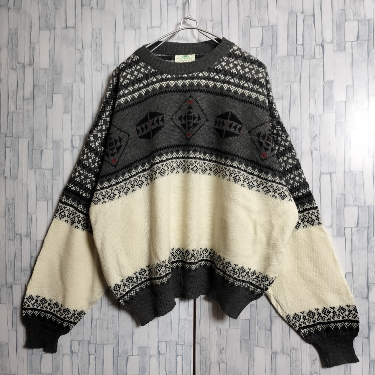 ノルディックニット ブルガリア製 フェアアイル ボーダー柄 ノルウェーセーター