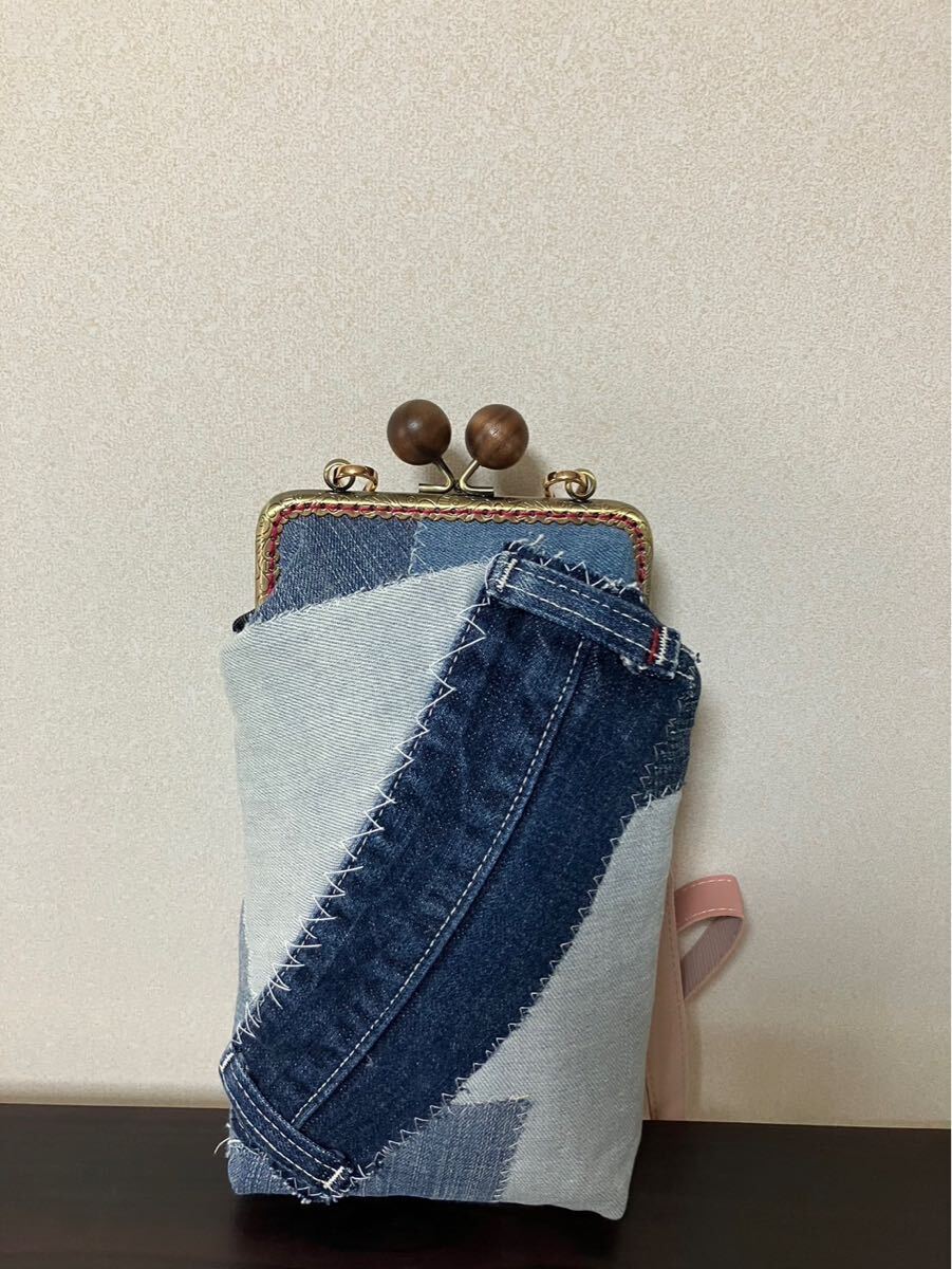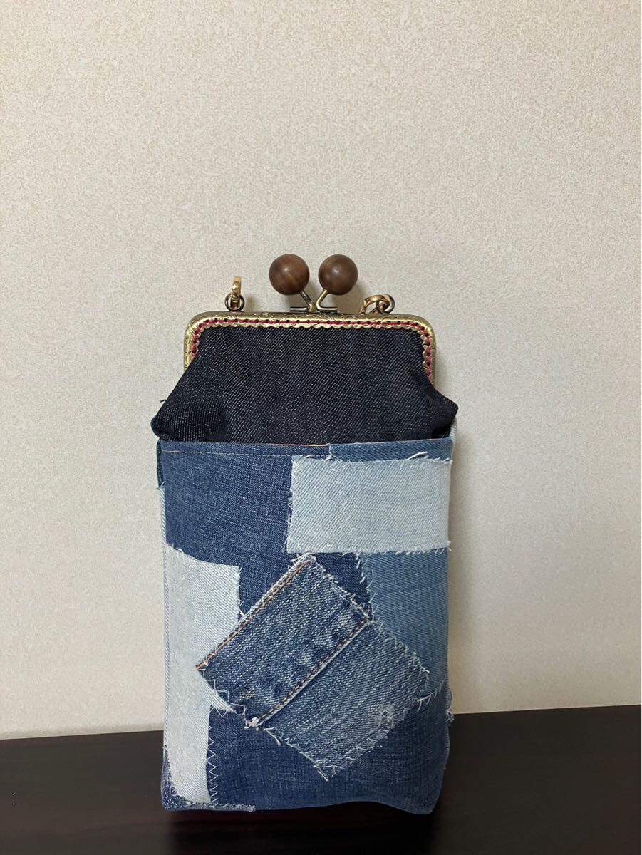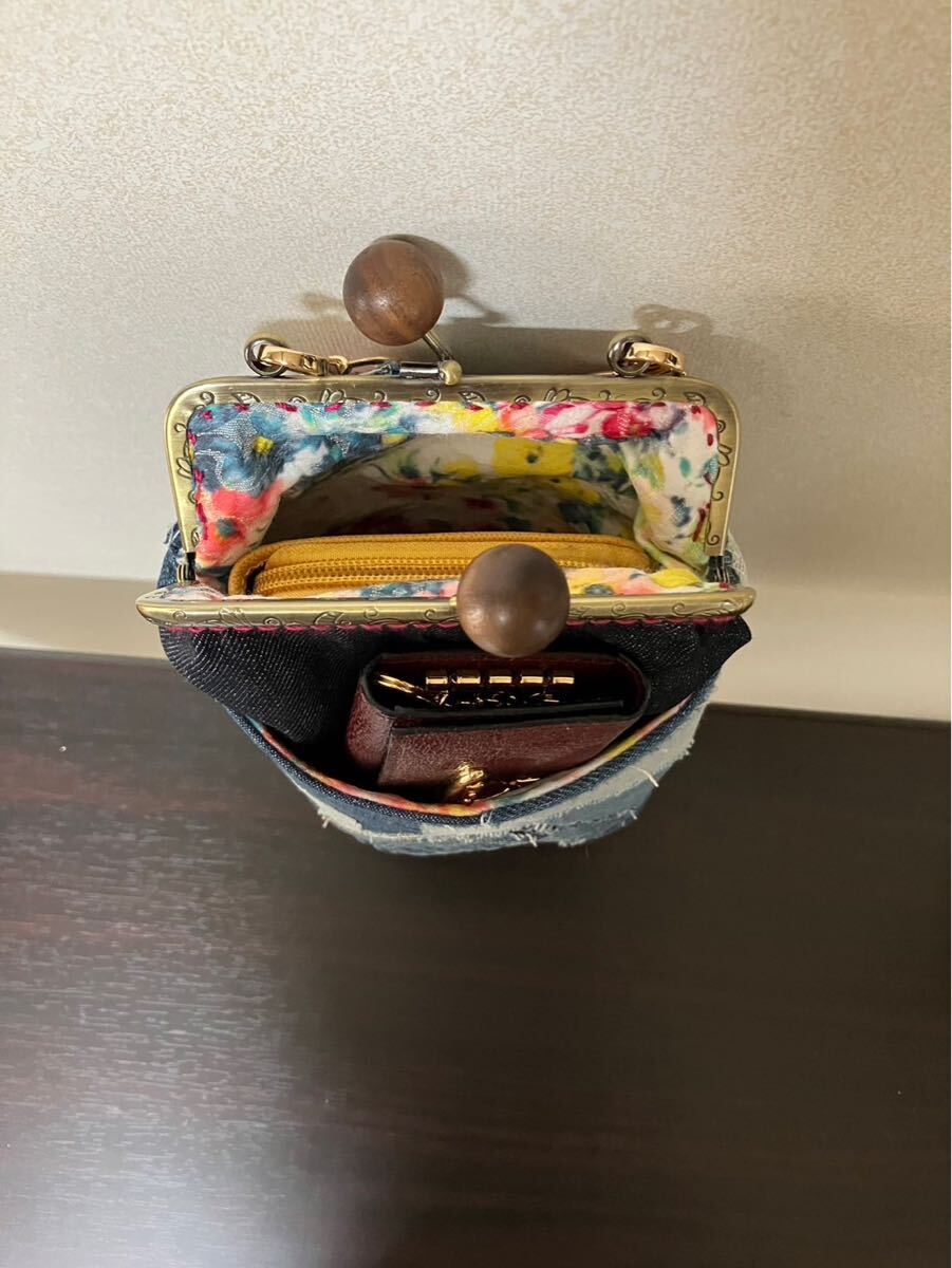 #アンズルーム#ハンドメイド#がま口ポーチ#がま口サコッシュ#スマホポーチ#デニム#パッチワーク#花柄