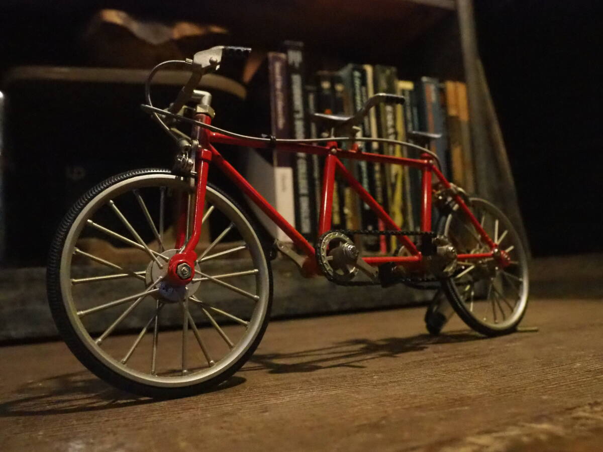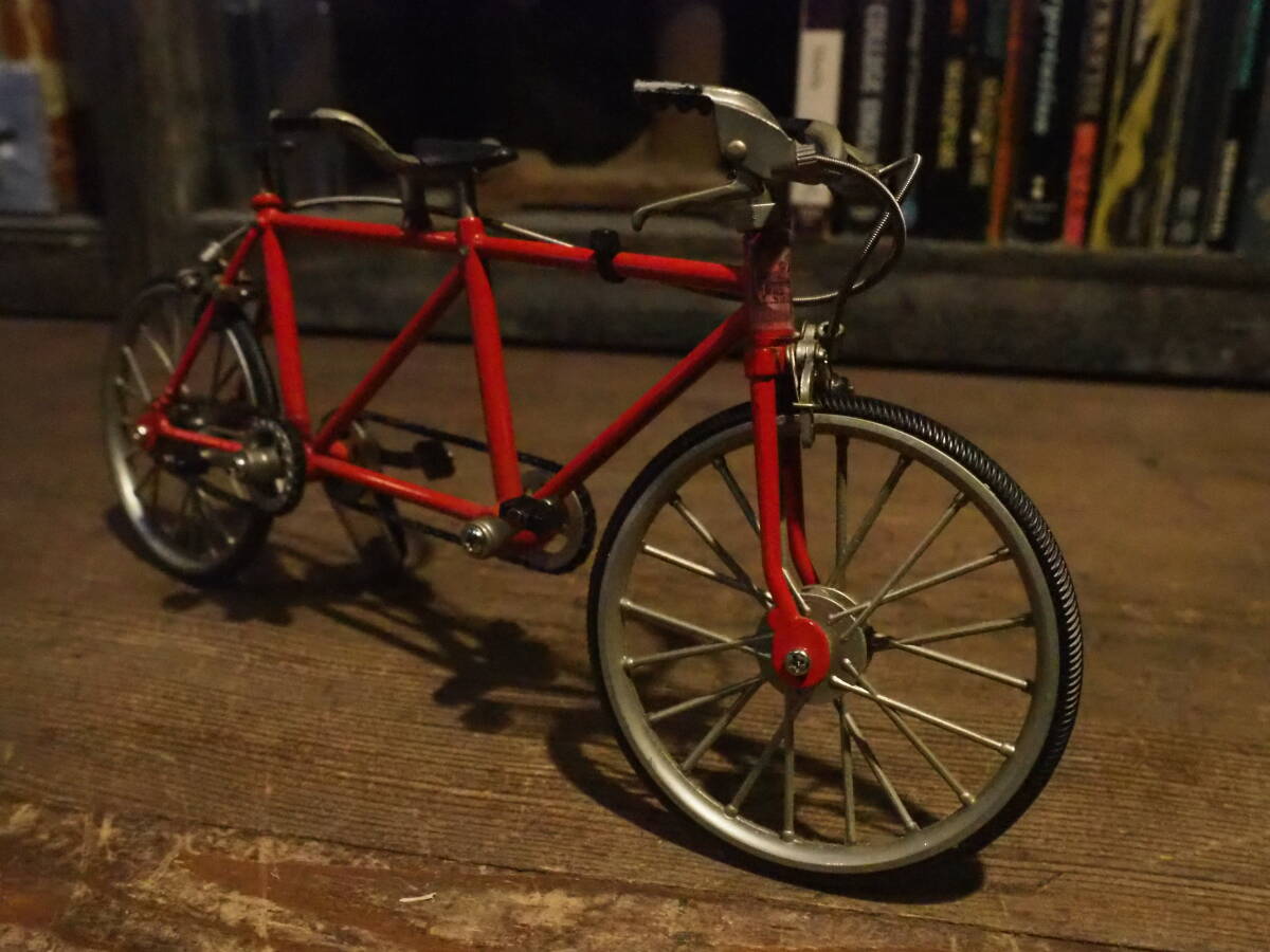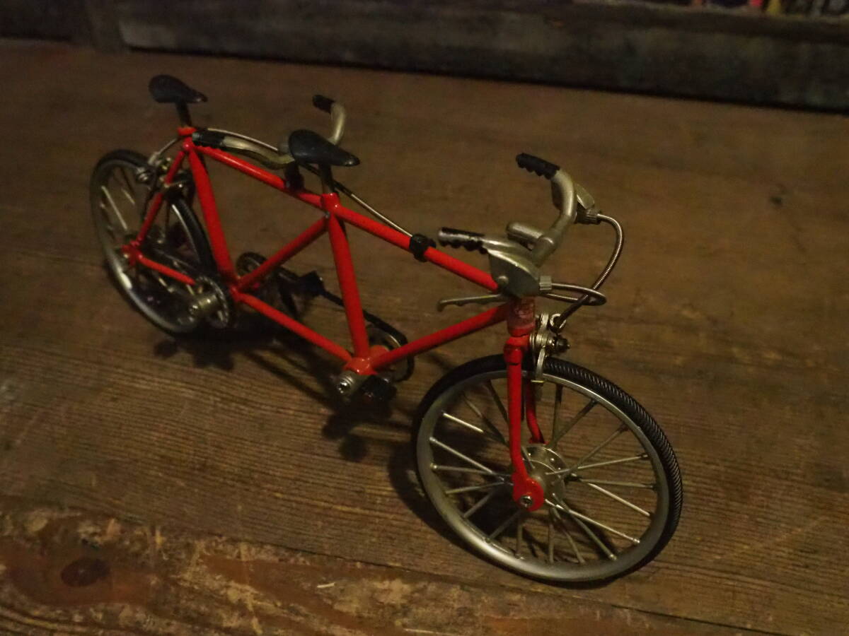 【細密ミニタンデム自転車】ペダル駆動アイアン古道具ミニカー三輪車ペダルカーハンドル骨董アンティークインテリアインダストリアルダルマ