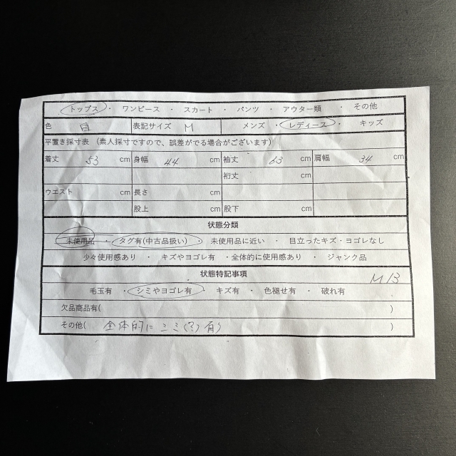 ・慎重に検品を行っておりますが、見落としがある場合がございます。