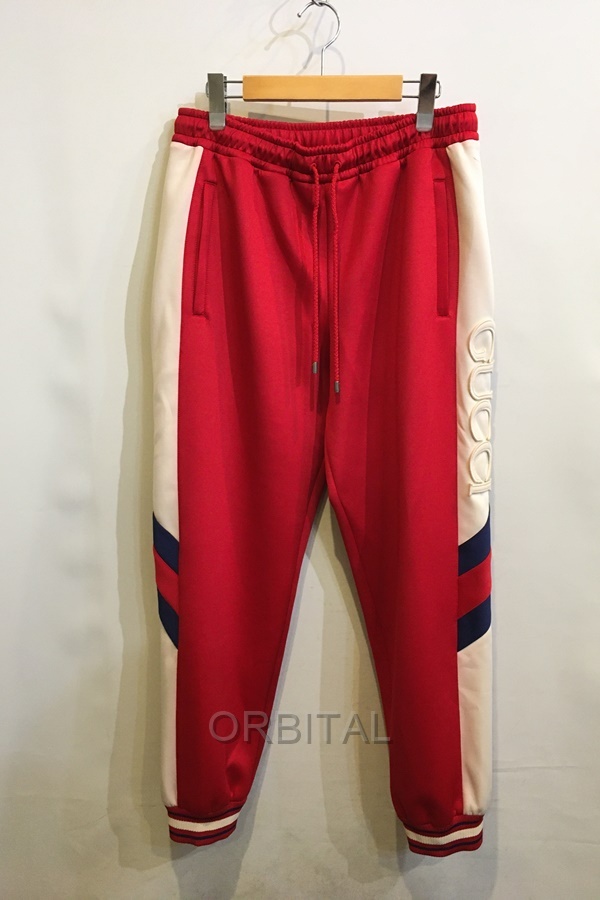 二子玉) GUCCI グッチ 訳有未使用 Neoprene Track Webbed Pant サイドロゴ トラックパンツ レッド メンズ M 715190 国内正規