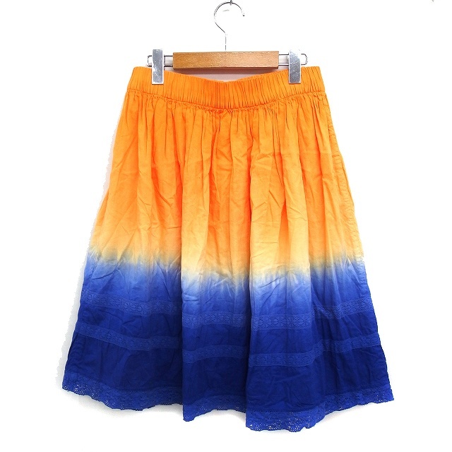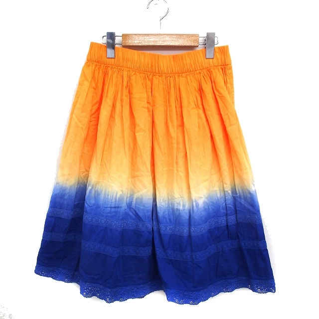 ロペピクニック ROPE Picnic ギャザー フレアスカート ひざ丈 レース グラデーション コットン 綿 38 オレンジ /FT21 レディース
