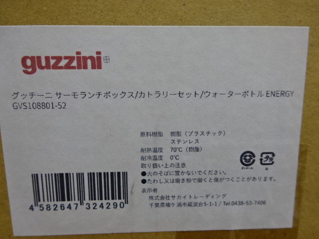 ①【店頭展示未開封品】サーモランチボックス/カトラリーセット/ウォーターボトル ENERGY アソート GVS108801-52 グッチーニ|GUZZINI