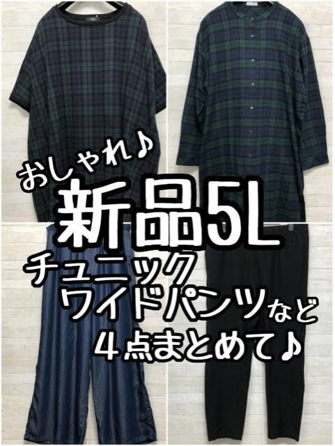 新品☆5L♪チェック柄チュニックや薄手ワイドパンツ等4枚セット♪〇L235