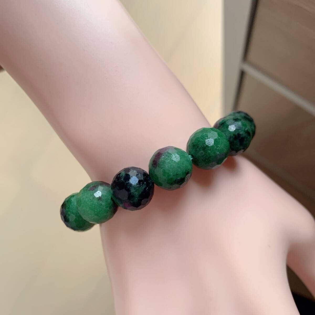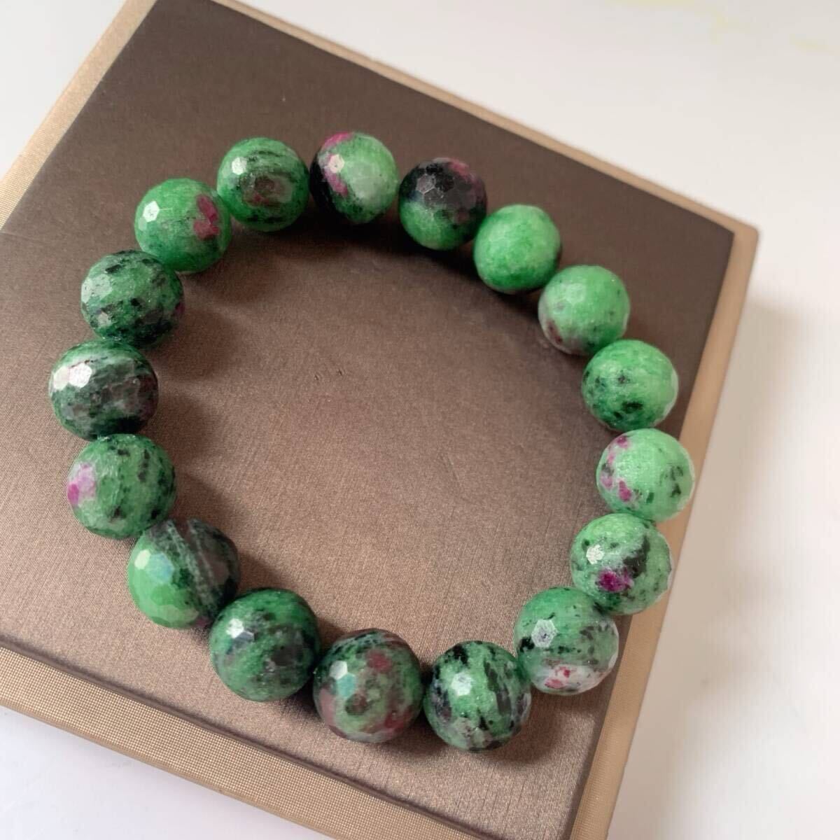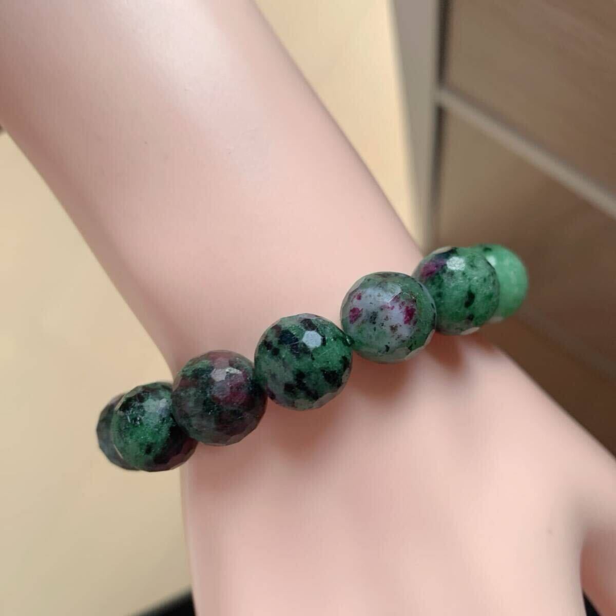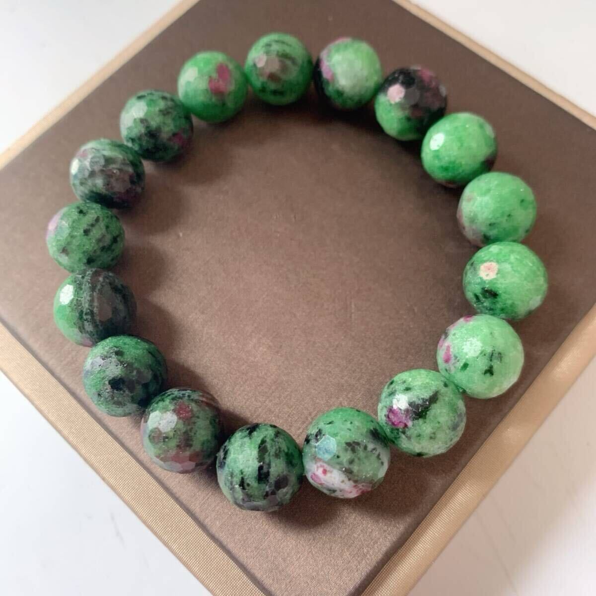 ◇ ルビーインゾイサイト ◇ブレスレット◇面カット◇パワーストーン◇天然石◇巾着袋付き◇プレゼントにも 028b21802