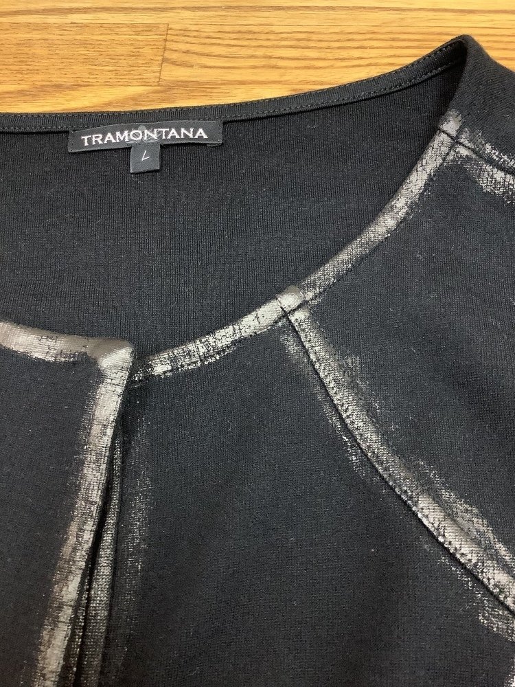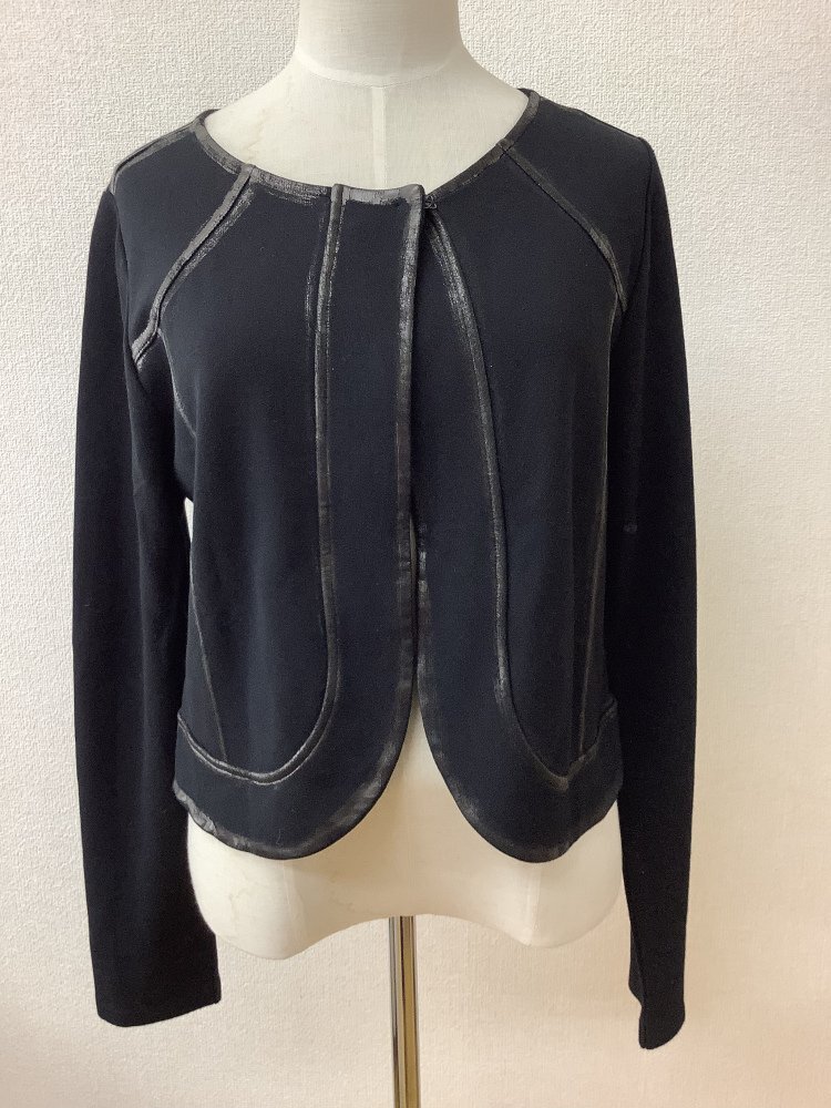 | 管理番号:10^132703 トラモンターナ 黒カットソー生地カーディガン ふちペイント 表示サイズ:L 実寸(参考)