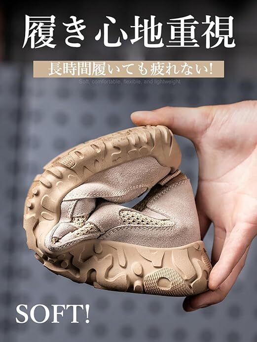 【こだわりの履き心地】軽量設計で長時間の作業でも疲れにくく、柔らかいクッション性のある中敷きが足をサポートします。作業靴全体は柔らかいので、履きやすくて疲れにくい!