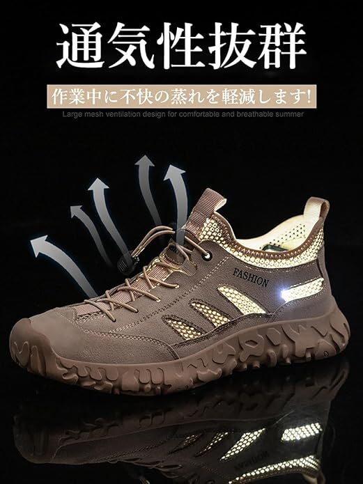 【通気性良い】このあんぜんぐつは高品質のニットメッシュ生地を使用し、足を涼しく保ち、優れた通気性を実現し、一年中快適に過ごせます。