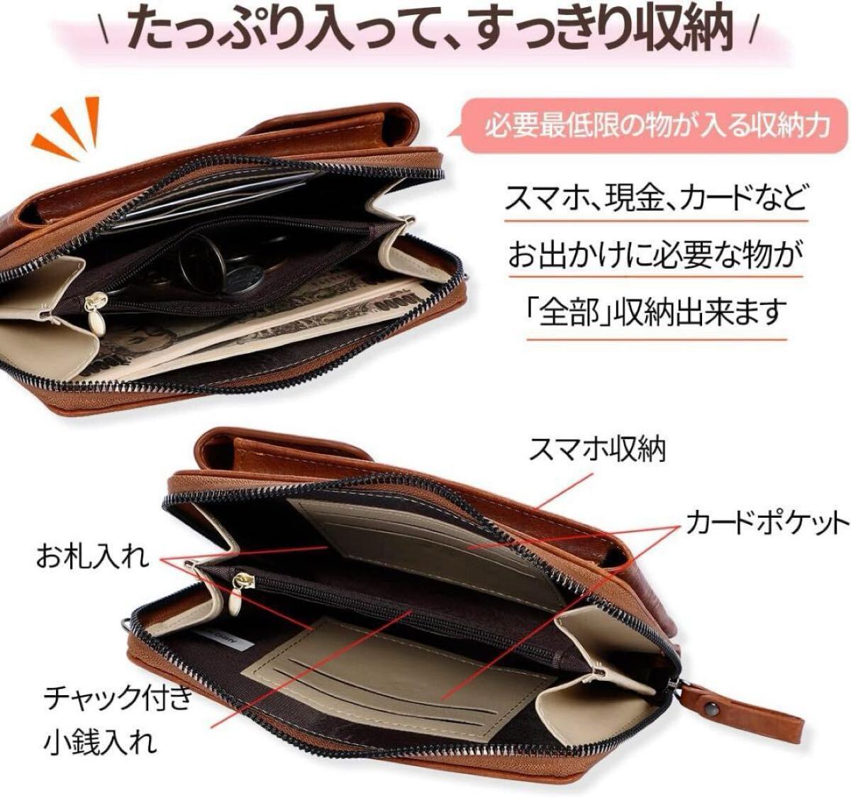 ・ファスナーポケット付きで小銭や鍵、ICカードなどをスマホと一緒に持ち運び!出勤、通学、旅行、パーティー、運動など様々な場合にもおすすめです!