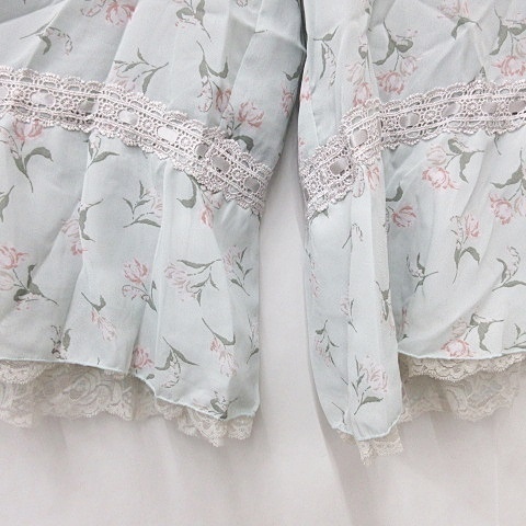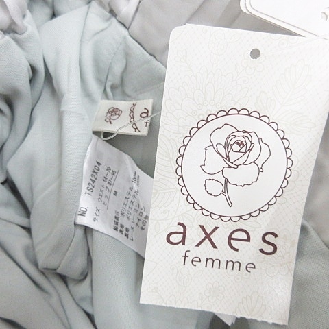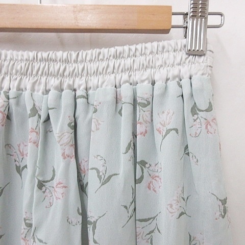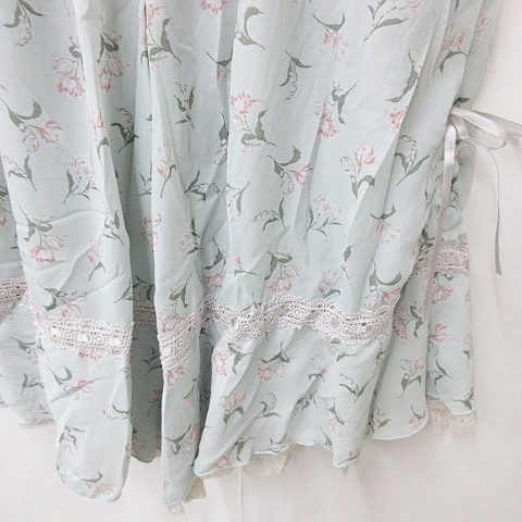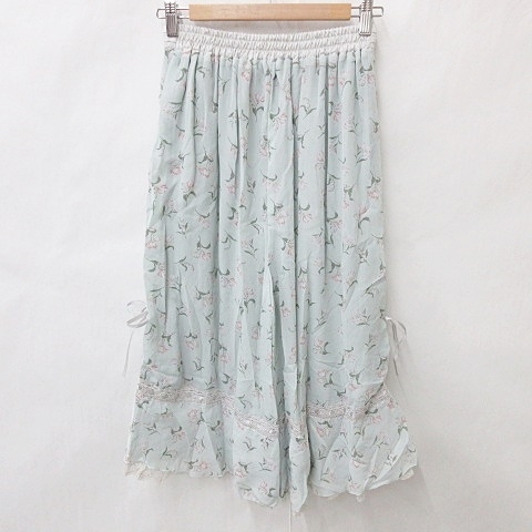未使用品 アクシーズファム axes femme パンツ フレアーパンツ ガウチョ ワイド ロング 総柄 花柄 レース リボン 緑 ミントグリーン M レディース