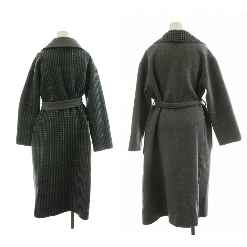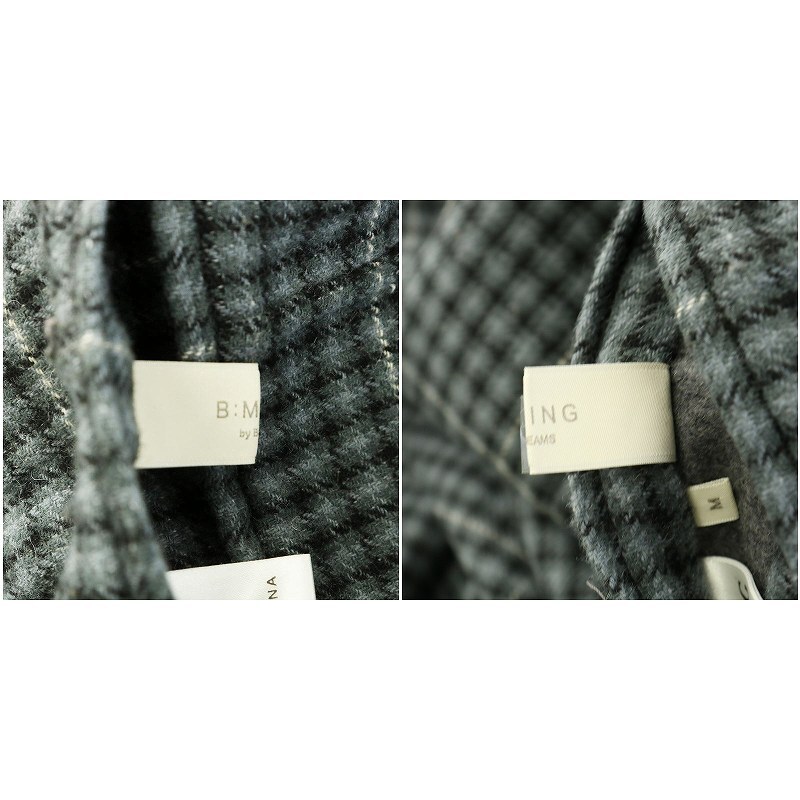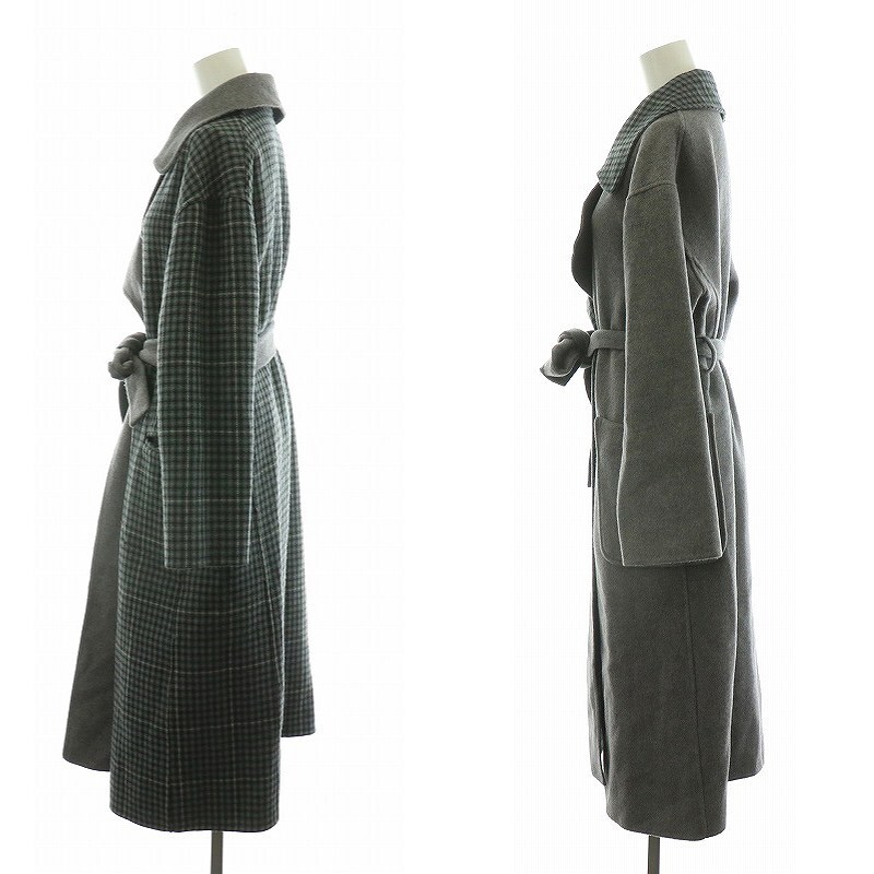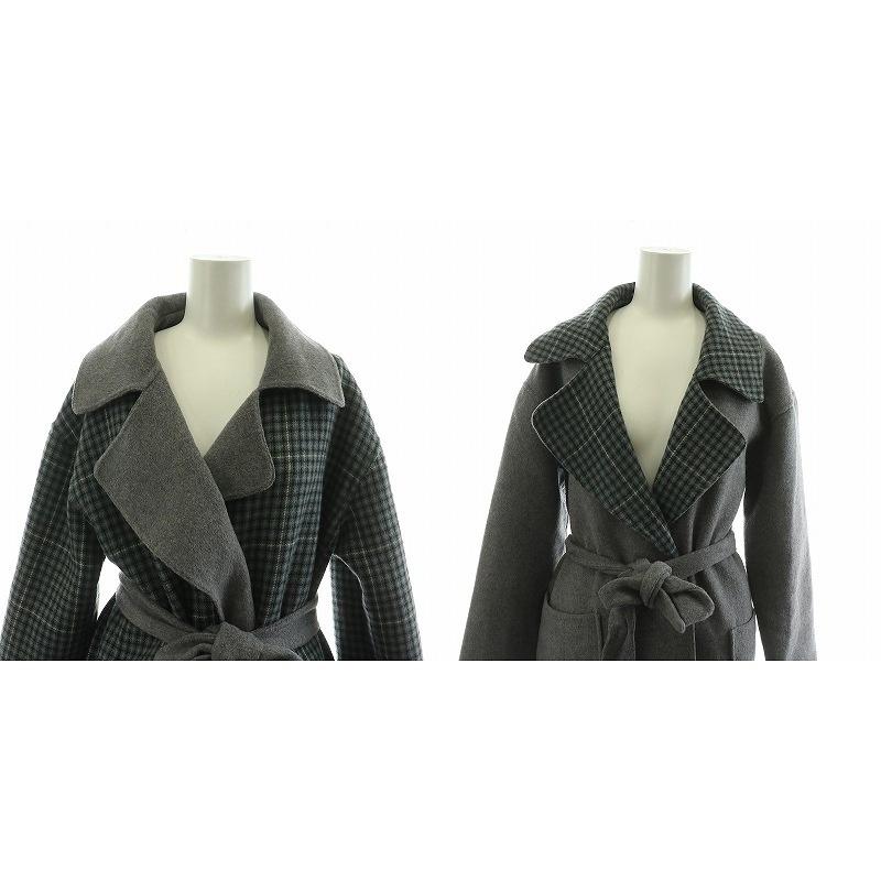 ビーミングバイビームス B:MING LIFE STORE by BEAMS リバーシブルコート アウター ロング チェック ベルト付き M グレー ブルー ■MT