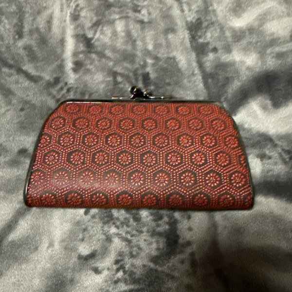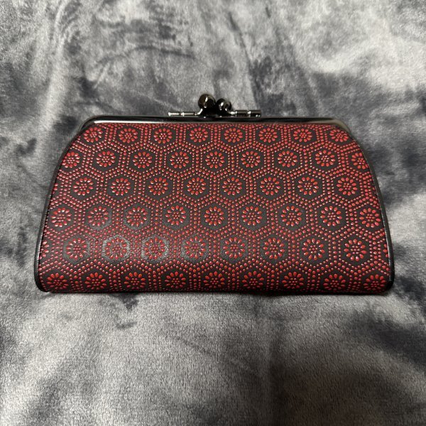 印傳屋 INDEN-YA 甲州印伝 亀甲 親子がま口財布 黒地/赤漆 | ||||||||||||||||||